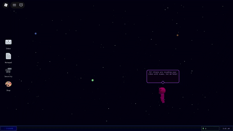 Creating a tutorial posed many challenges. Since there is a lot to learn about the computer and tower defense ecosystem, we had to make a comprehensive tutorial. Orbit (our friendly alien friend) onboards the player with step-by-step instructions, guiding them through the interface with UI highlighting and directing them to certain parts of the map with path indicators. We made this to ensure anyone can follow along with the story and learn the game’s environment.