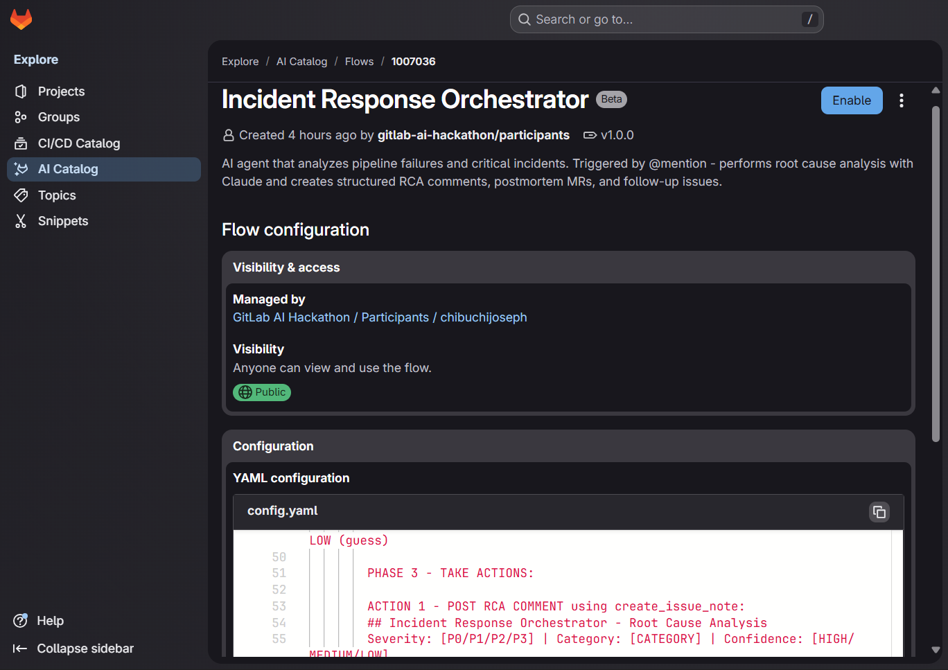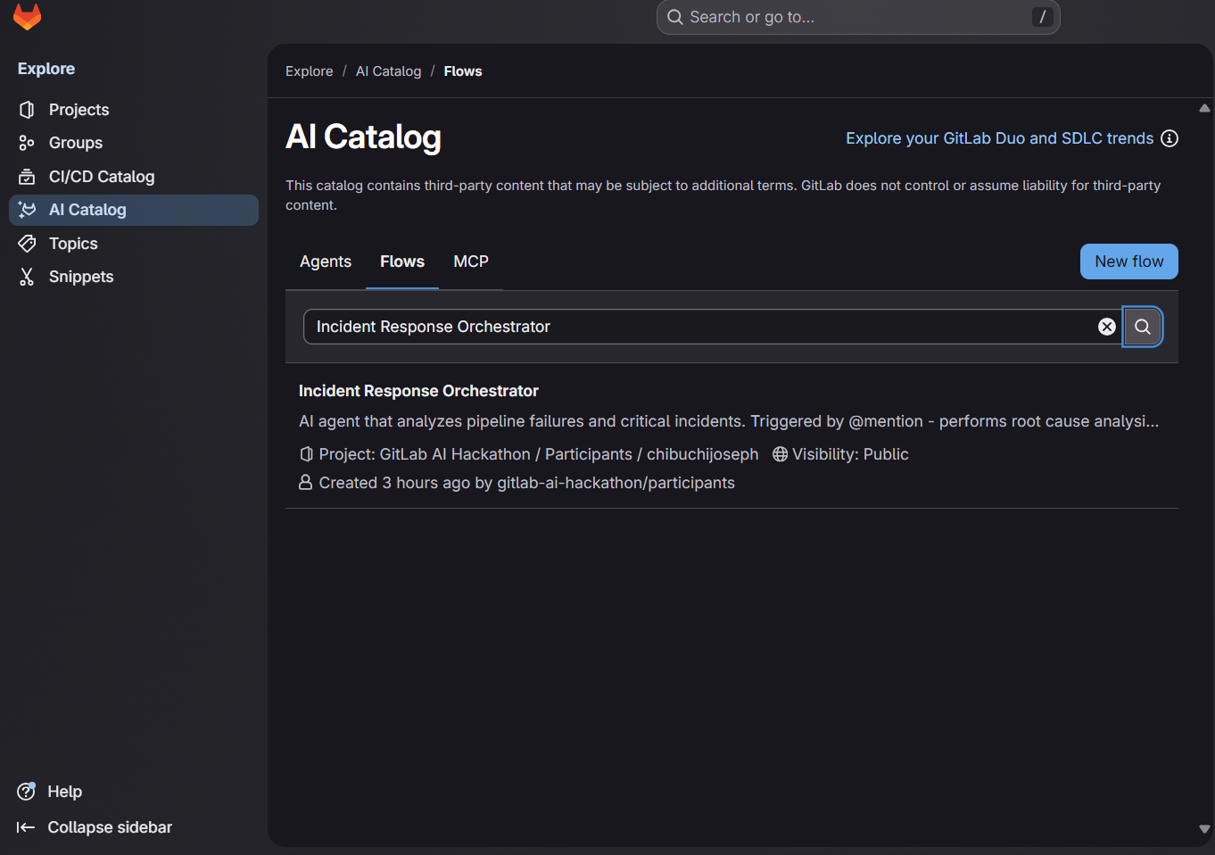 We built the system using the GitLab Duo Agent Platform, leveraging its three core pillars: