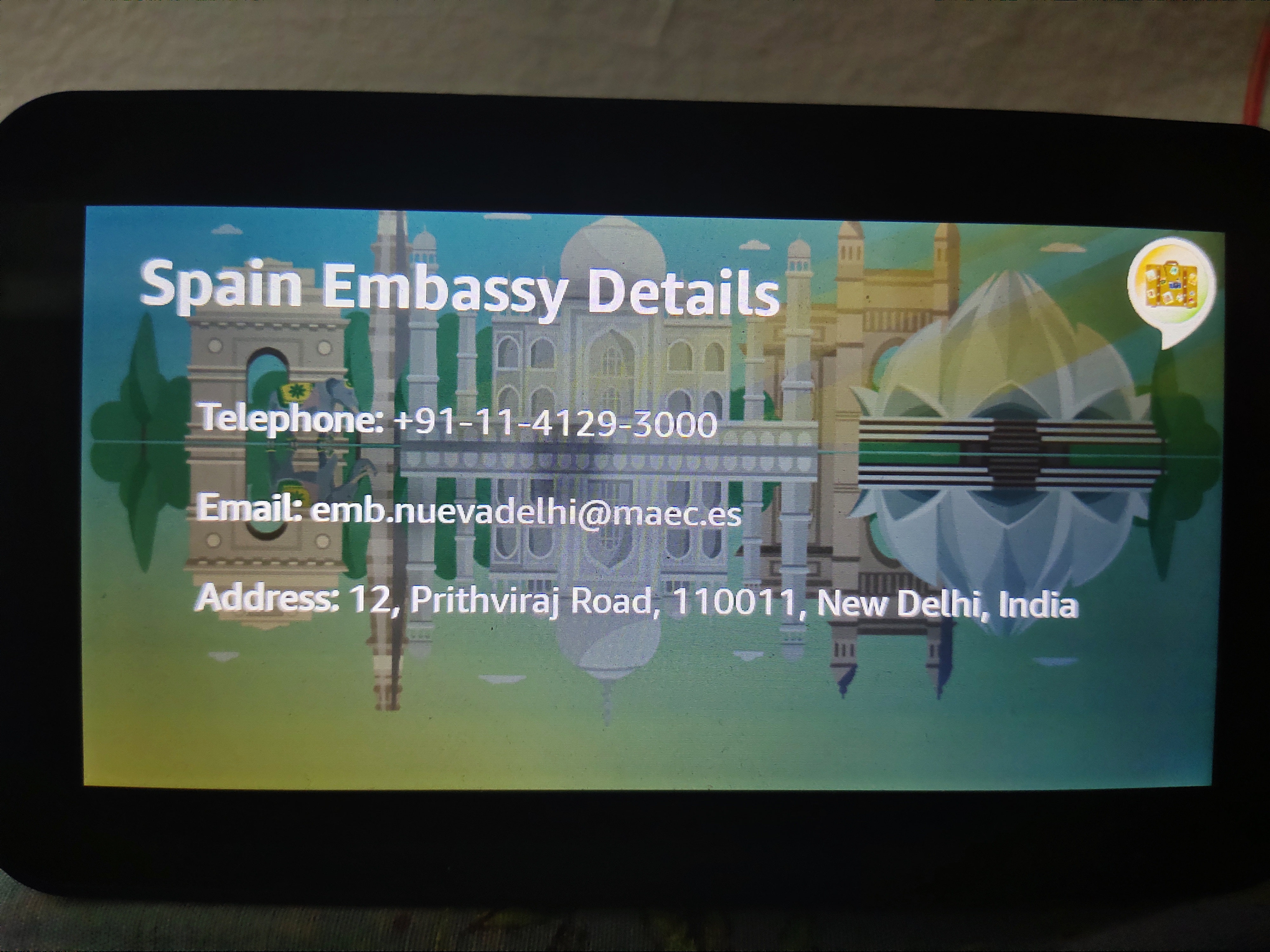 Need to reach your country's embassy? Alexa will provide you the phone number, email, and address of your country's embassy in India.