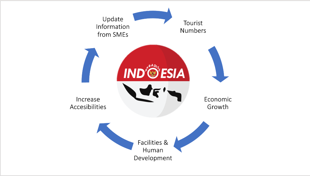 Since the COVID-19 outbreak, Indonesia's tourism industry has been severe to maintain its operation, especially for the Small and Medium Enterprises and local tourist guides. One of the things that makes foreign tourists reluctant to come to Indonesia is the lack of information. For instance, when tourist arrived at the airport, they were chased by porters and brokers who offered their services. It's not giving information about what tourist attractions can be visited in the area and no one could explain how to get there. While tourism plays a significant role and contributes to one of the main sources of foreign currency earnings. Not to mention that tourism provided 12.7 million jobs, representing 10.5% of total employment. Beyond these economic benefits, tourism builds links between people. It challenges stereotypes. It opens up new worlds and greater understanding. Unlike any other websites, apps, or articles that put more emphasis on selling their product or services, this app provides complete access (brief description, nearby food, hotel, accommodation, etc.) and comprehensive information in which the tourist will get beneficial information, attracted then providing the itinerary and other related services in an effort to promote a better experience of visiting Indonesia. As Indonesia pursues to thrive in the tourism industry beyond Bali and not all “hidden” tourism destination gets acknowledged and discovered, we could envisage a great opportunity for Indonesia's tourism actors to harness this chance to acquaint the world with the rich in culture, awash in natural beauty and warm with the hospitality of Indonesia.