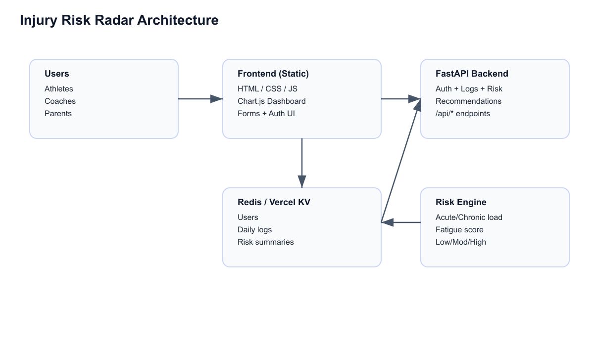 Sports injuries often come from overuse and missed recovery signals. We wanted a simple, daily check‑in that translates training load and wellness into clear, preventative guidance athletes and coaches can act on.