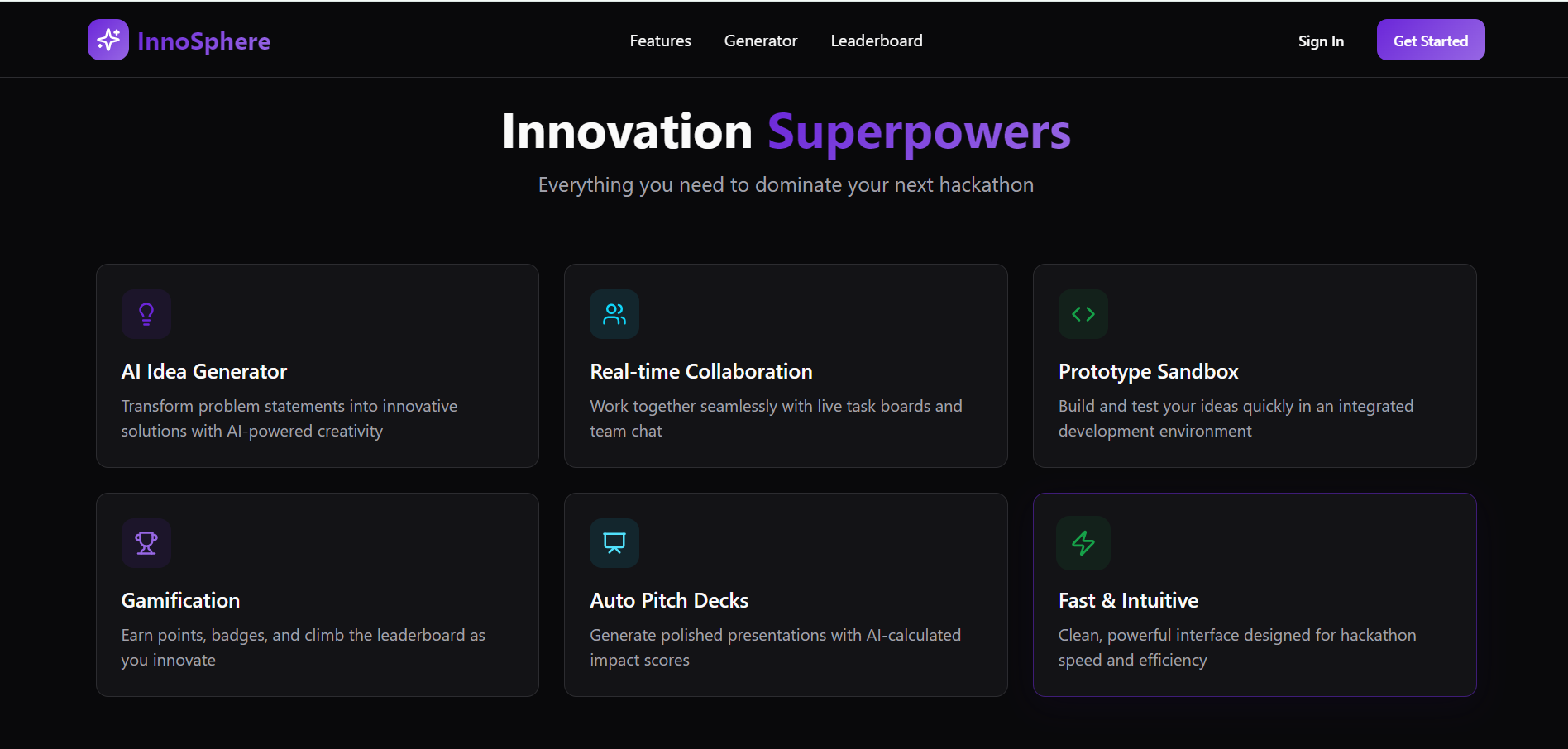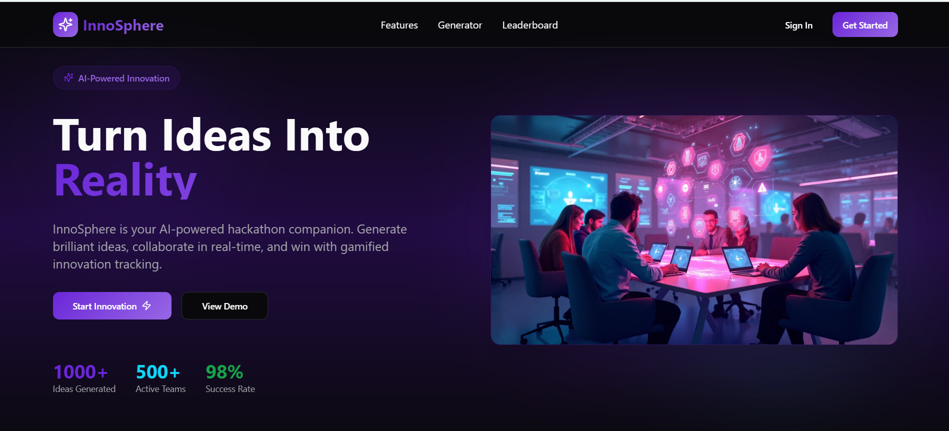 InnoSphere is an AI-powered innovation accelerator that helps teams: