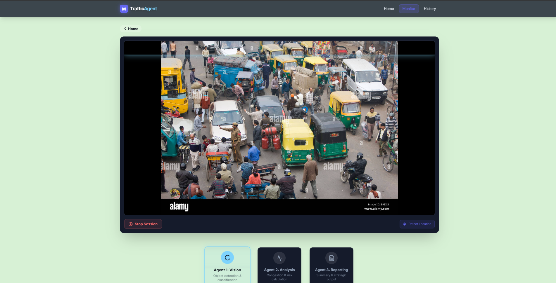 Traffic is inherently a distributed and dynamic system, yet most existing solutions attempt to control it using centralized logic. This mismatch inspired the development of a Multi AI Agent–based Traffic Monitoring System, where specialized agents independently observe, analyze, and act—mirroring real-world traffic ecosystems.