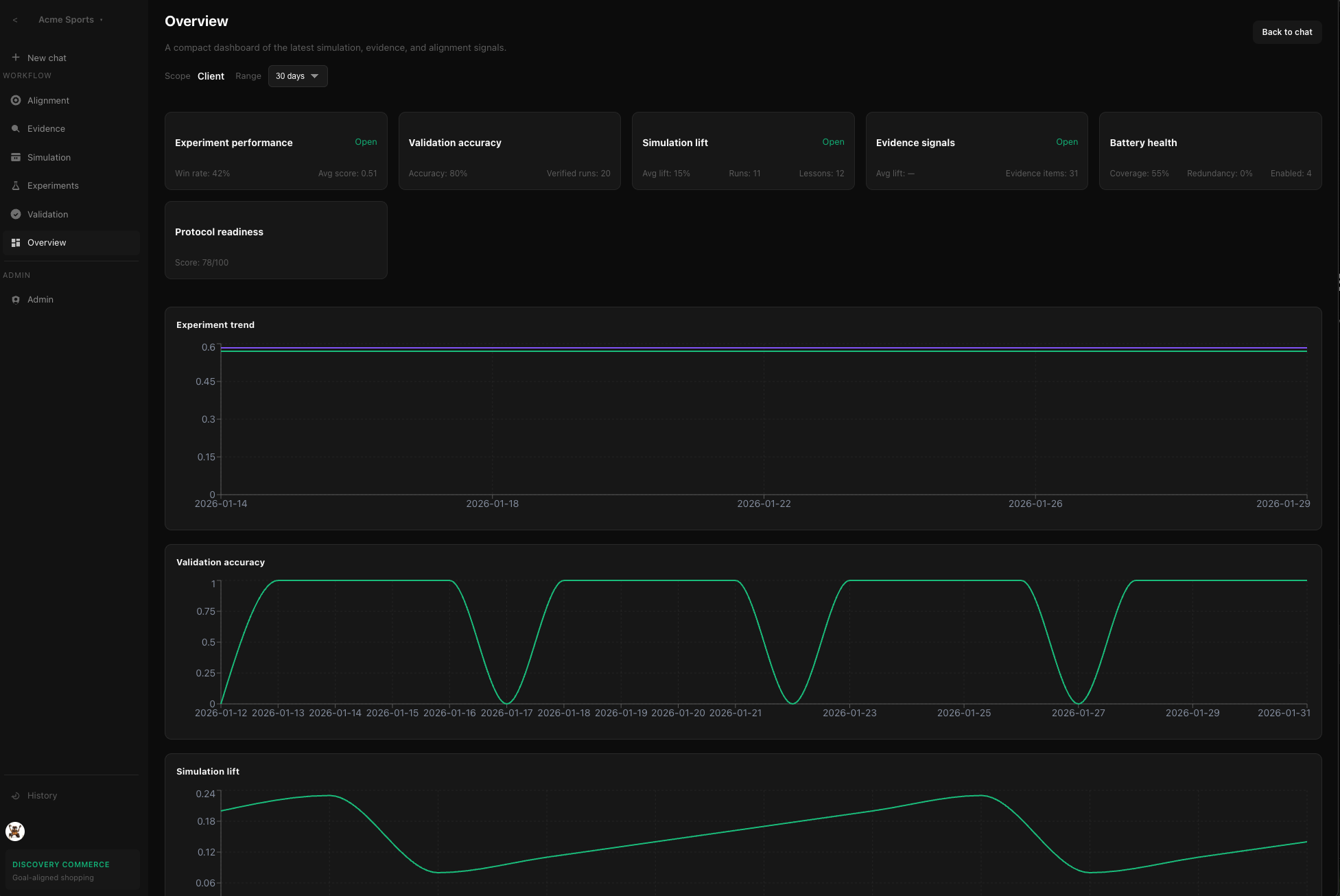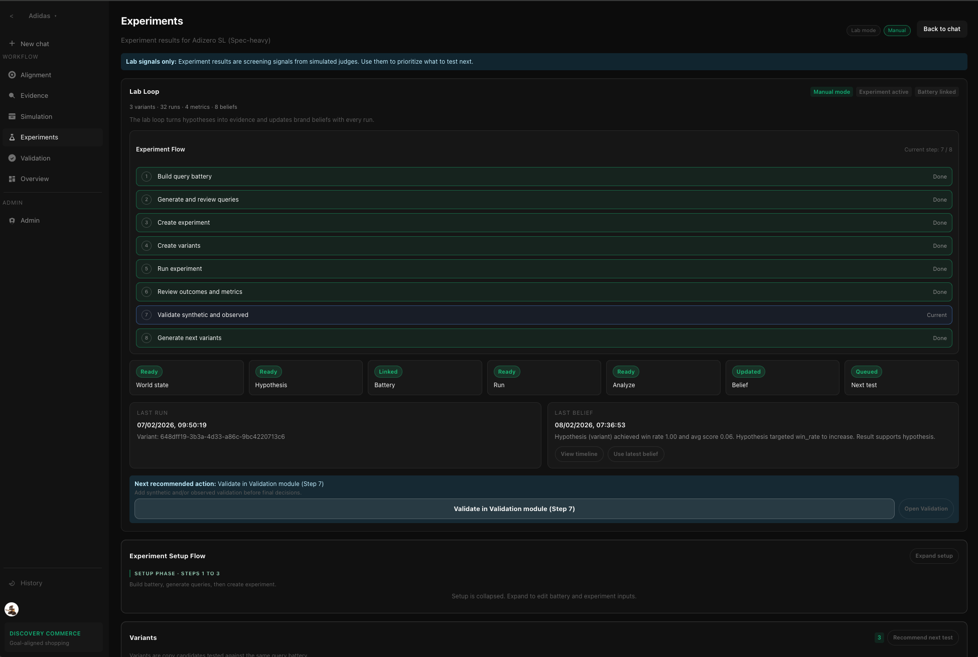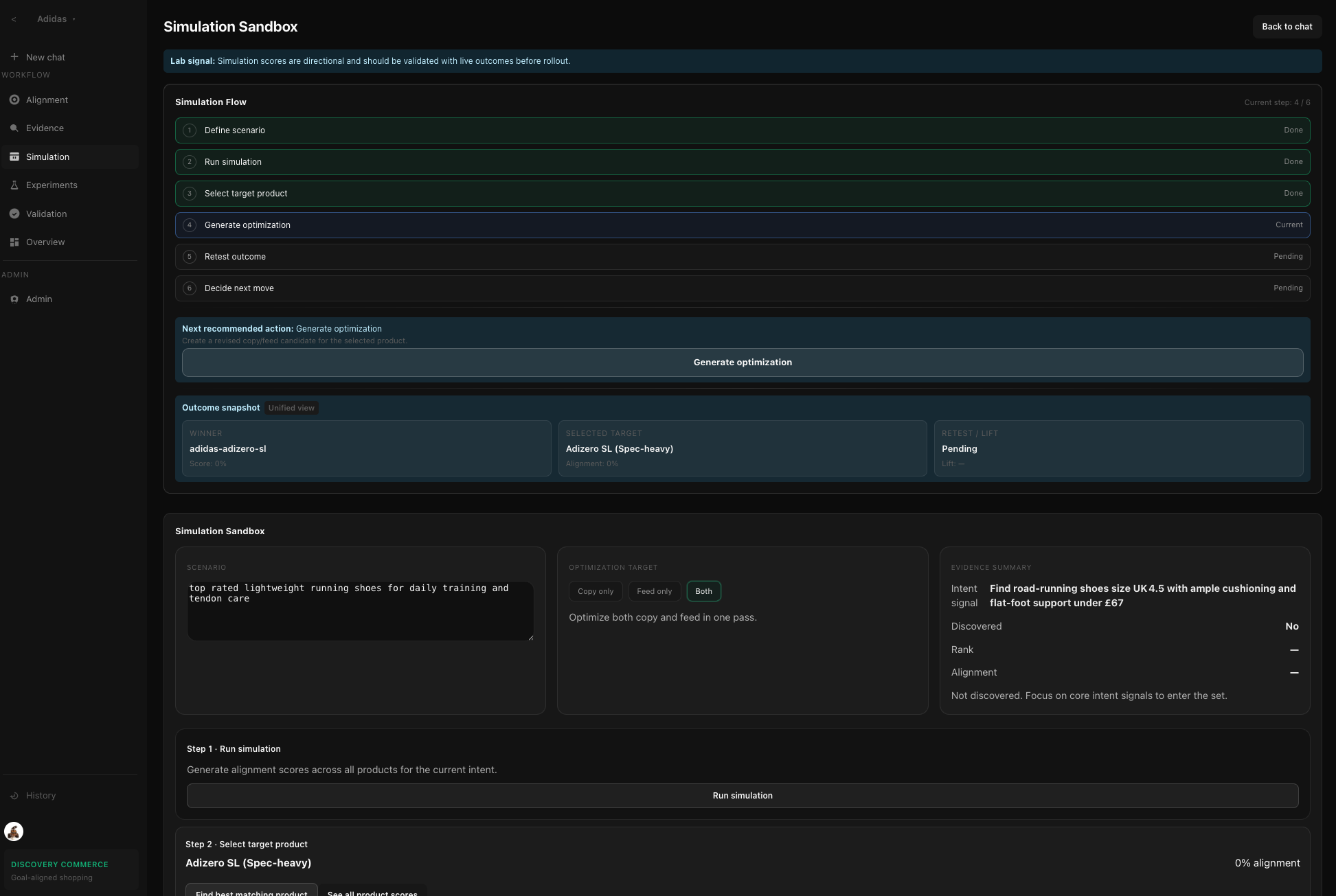 That led to Intent Loop Commerce: LLM Discoverability Lab: a validation-first loop for simulation, experimentation, and evidence-grounded iteration.