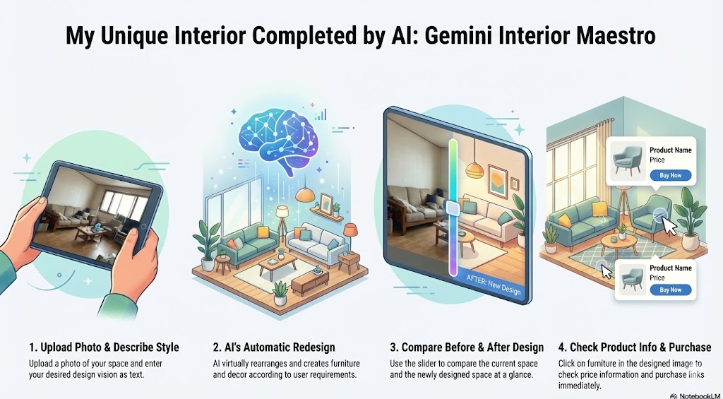 - Gemini’s Nano Banana image analysis to understand spatial structure, furniture, and style