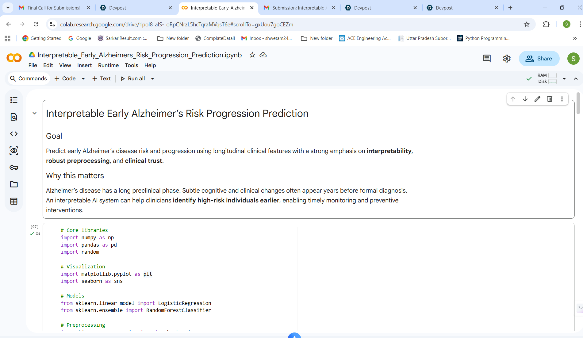 Alzheimer’s disease often develops silently for years before symptoms become clinically visible. Early intervention can significantly slow progression, but existing diagnostic tools are either expensive, invasive, or lack transparency. This motivated me to build an interpretable AI system that can assist early risk identification using accessible clinical data while remaining trustworthy for real-world clinical use.
