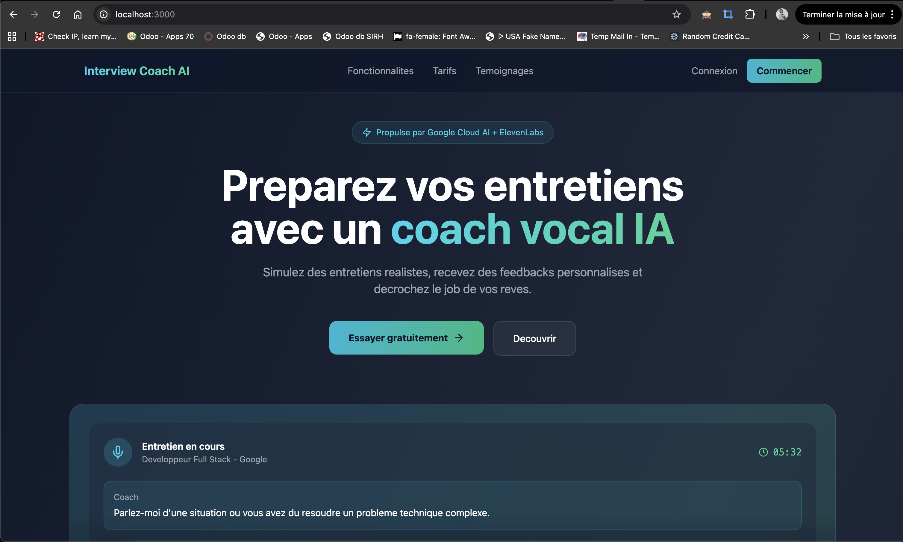 We combined: An LLM for question generation and semantic analysis of responses Voice AI to provide a natural and credible voice A lightweight web/mobile interface to launch interview sessions A scoring engine based on clarity, structure, relevance, and confidence in spoken language The focus was placed on the speed of feedback and the user experience.