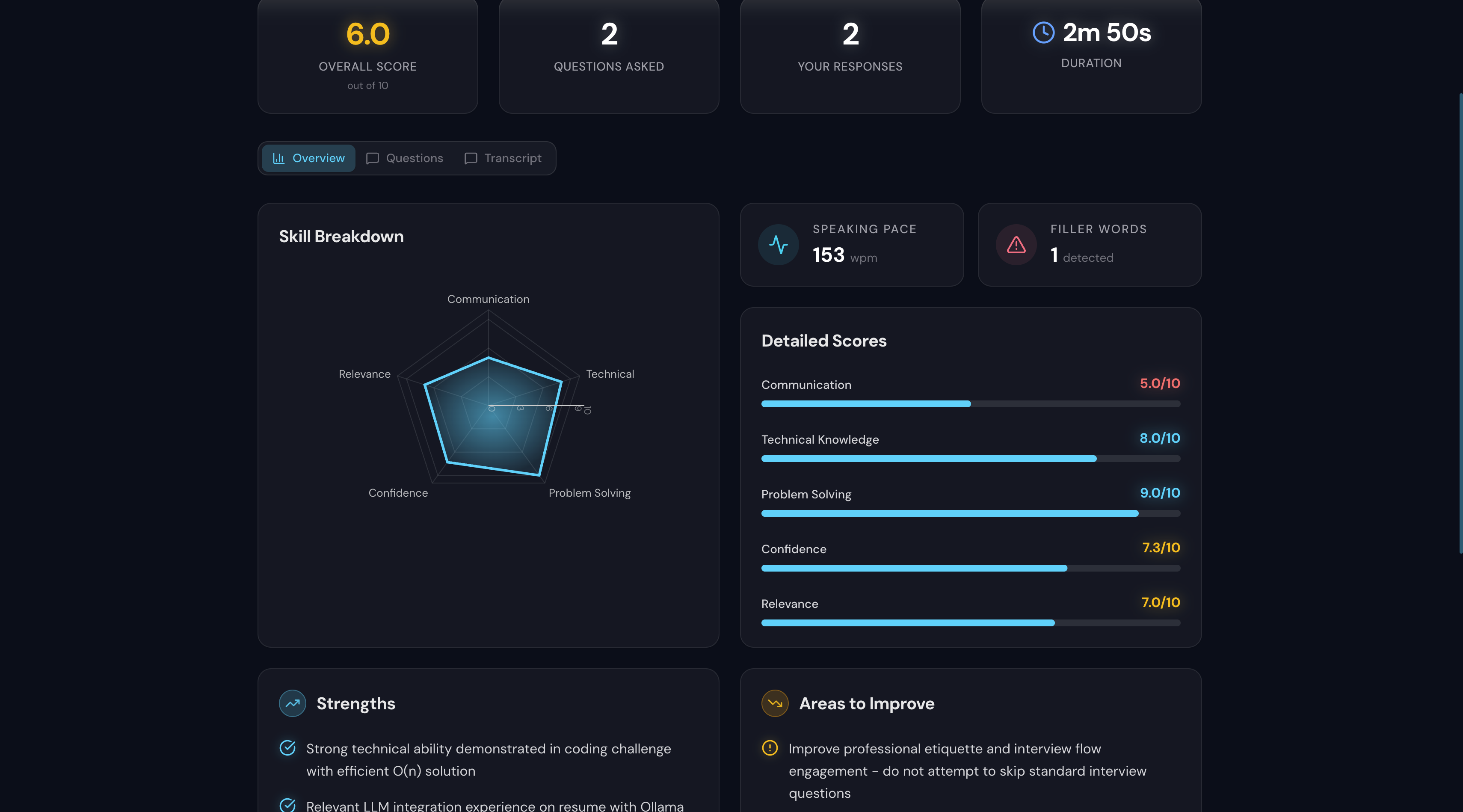 - Deeper analytics: detecting filler words, speaking pace, and confidence patterns across multiple sessions to show improvement over time
