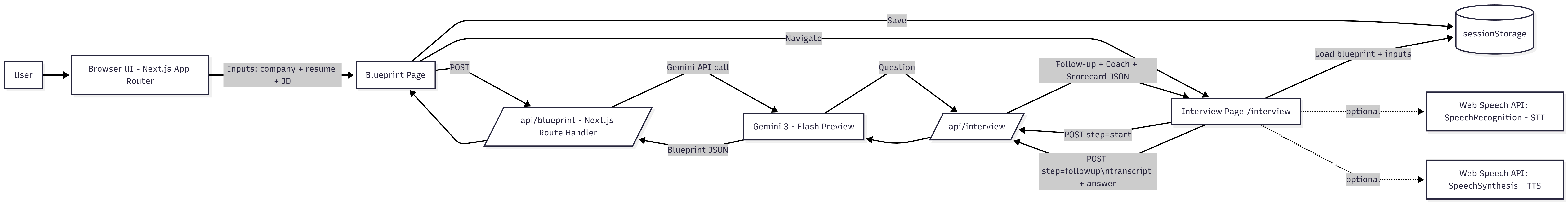 Interviewee is powered by Gemini 3 Flash Preview, which serves as the core reasoning engine behind both interview preparation and live interview simulation. Gemini is first used to generate a personalized interview blueprint by analyzing a candidate’s resume alongside a real job description. From this input, Gemini produces a structured JSON output that identifies the key role competencies being evaluated, potential gaps between the candidate and the role, company-specific interview considerations, and the most likely interview format (behavioral, technical, or case). This reasoning layer is intentionally exposed in the UI, making the system transparent, explainable, and auditable for both users and judges. Gemini 3 is then used to orchestrate a live, adaptive interview experience. During the interview, Gemini dynamically generates interviewer questions and follow-ups based on the candidate’s responses, simulating how real interviewers probe, redirect, and assess answers in real time. After each response, Gemini evaluates performance using a STAR-based framework and produces a detailed scorecard covering clarity, structure, impact, and role fit. It also rewrites answers to demonstrate how candidates can improve. By leveraging Gemini 3’s fast reasoning, structured output, and low-latency generation, Interviewee moves beyond static interview prep to simulate real hiring judgment in an accessible, human-centered way.