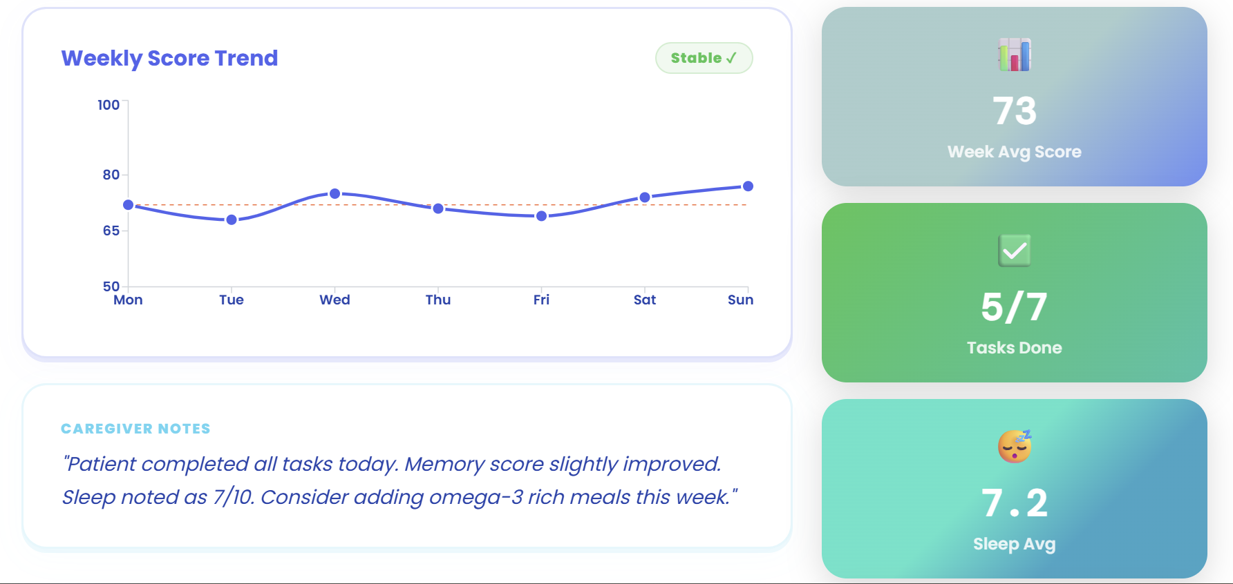 - Creating something more than just cognitive games — a holistic brain wellness system that includes tracking, diet, music therapy, and caregiver integration all in one app.