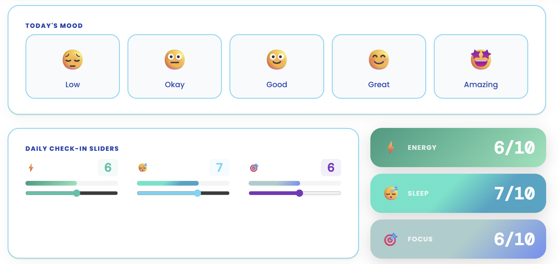 - We focused on our UI to be cognitively accessible with high contrast, low visual load, predictable navigation, and calming tones to support ageing users.
