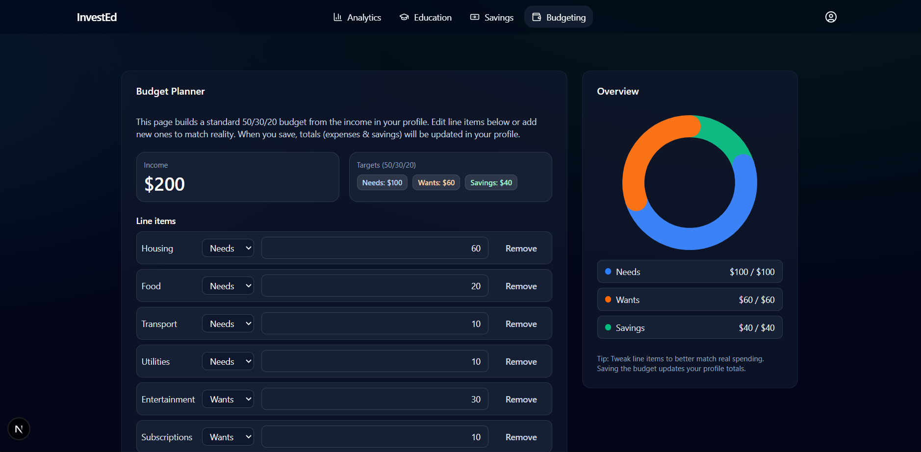 InvestEd is a smart, AI-powered student budgeting & investing hub that personalizes financial guidance based on your real numbers.