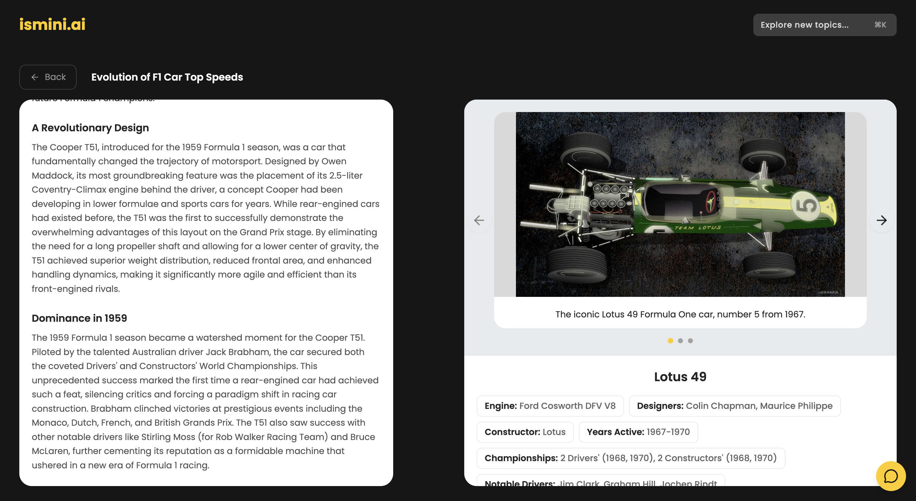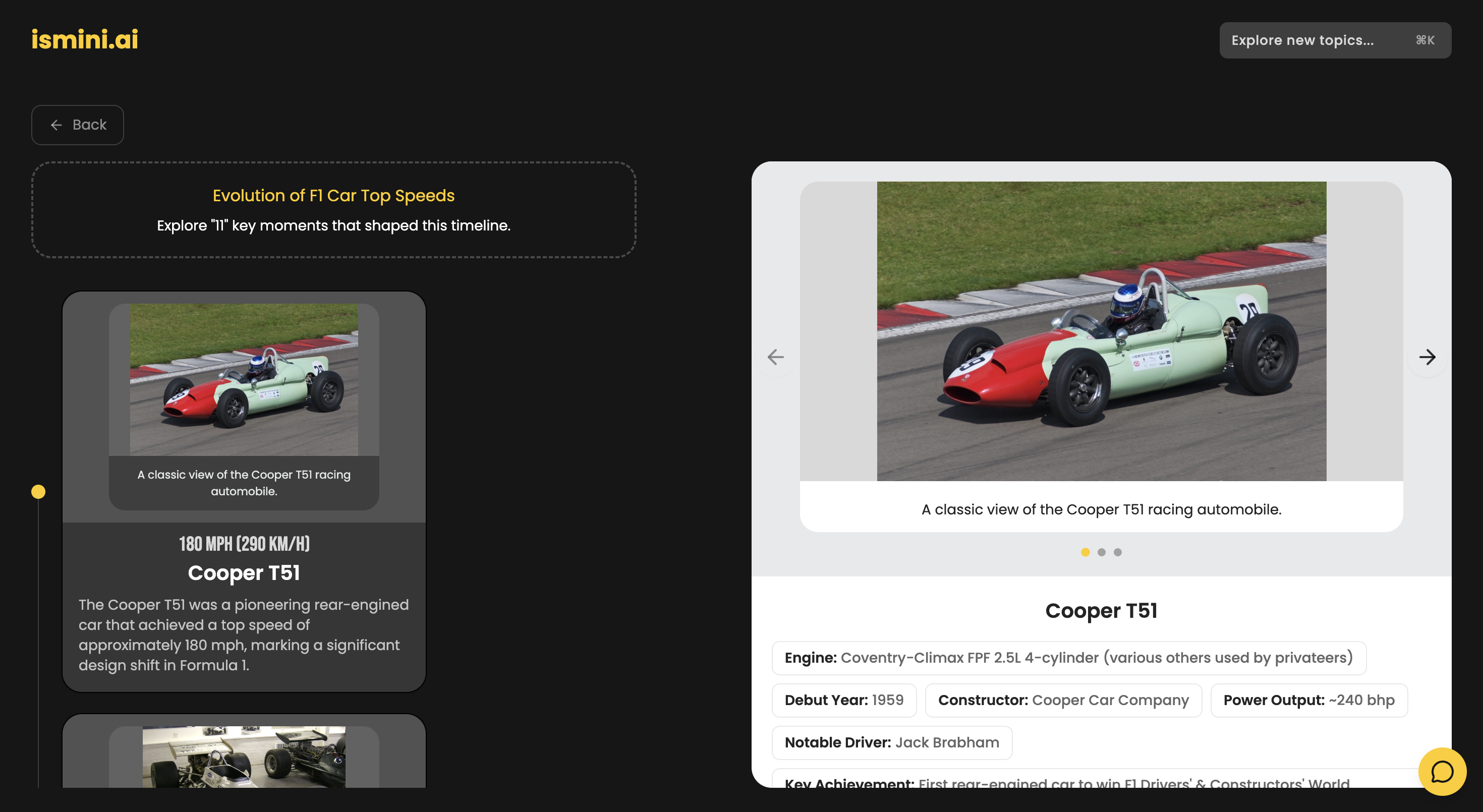 - Interactive Timelines: Users can explore topics through high-fidelity, chronological timelines.