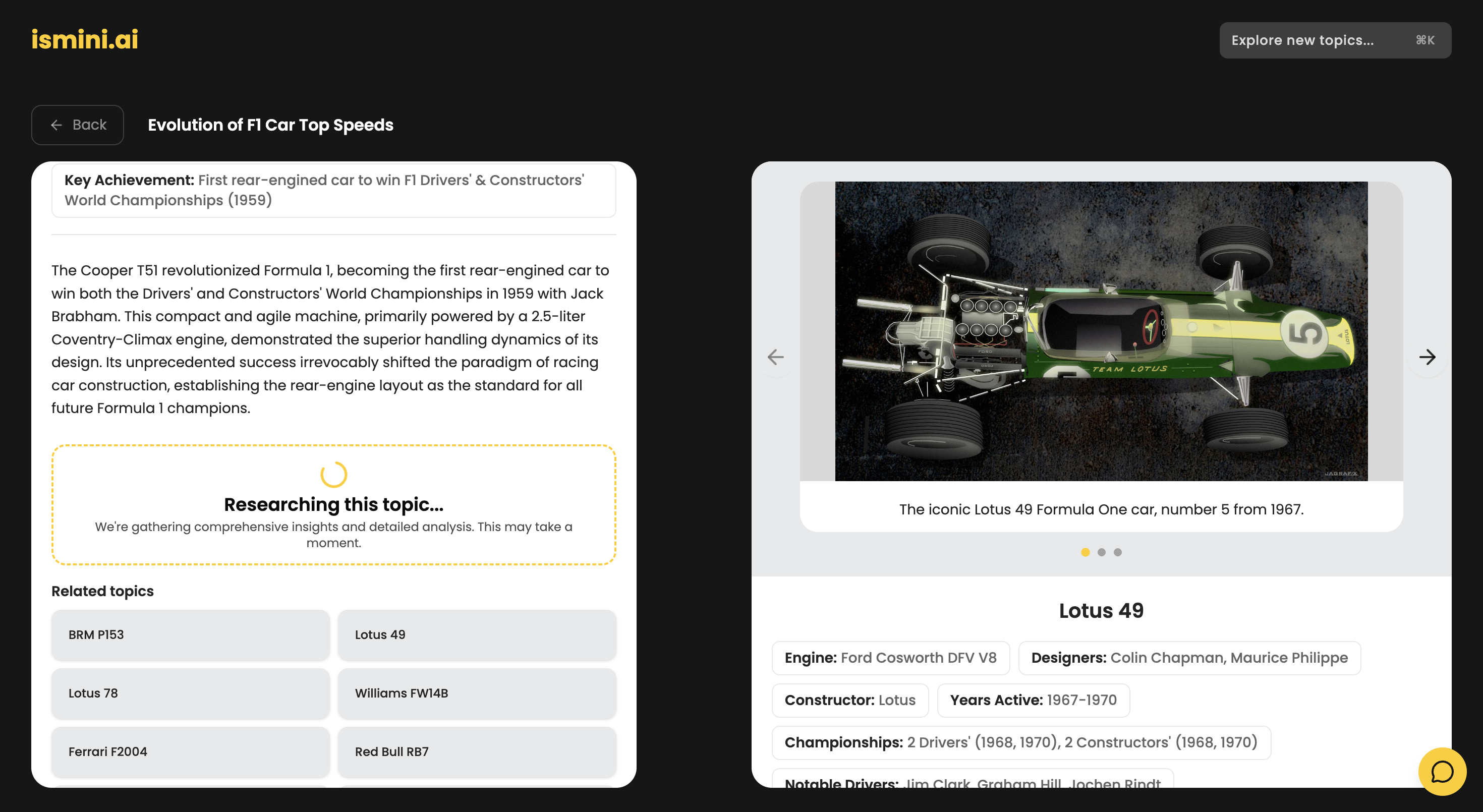 - Deep Research: On-demand agents scour the web and Wikipedia to write detailed deep-dives for every topic on the timeline.