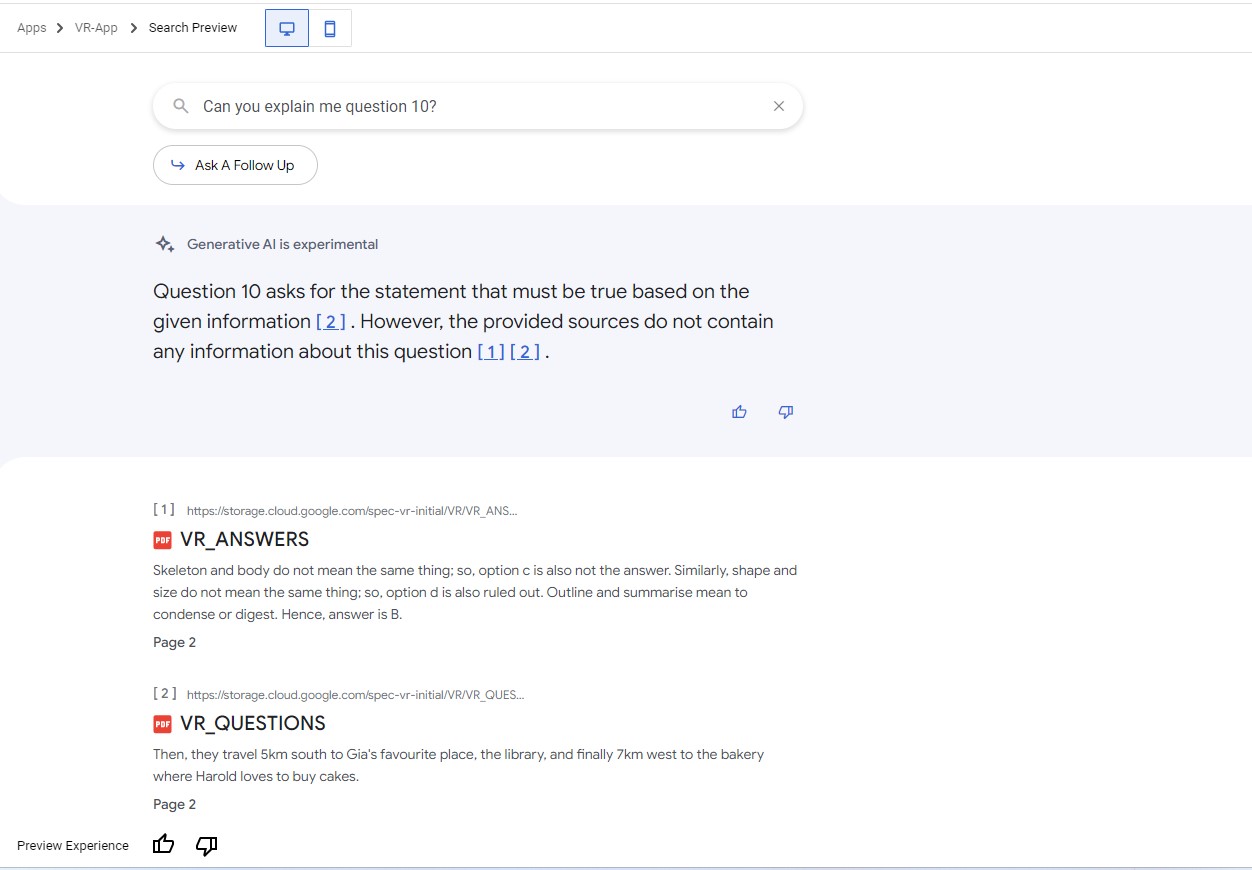 Verbal Reasoning Chat Agent: Master the Art of Verbal Reasoning Are you looking to excel in competitive exams, job interviews, or academic assessments? Our AI-powered Verbal Reasoning Chat Agent is here to guide you. Using Vertex AI, this chat agent assists users in finding accurate and relevant answers to verbal reasoning questions.