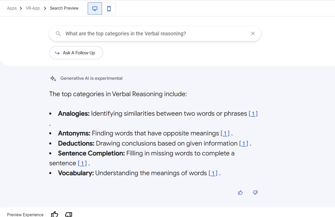 VR Search Agent - explanation of verbal reasoning question