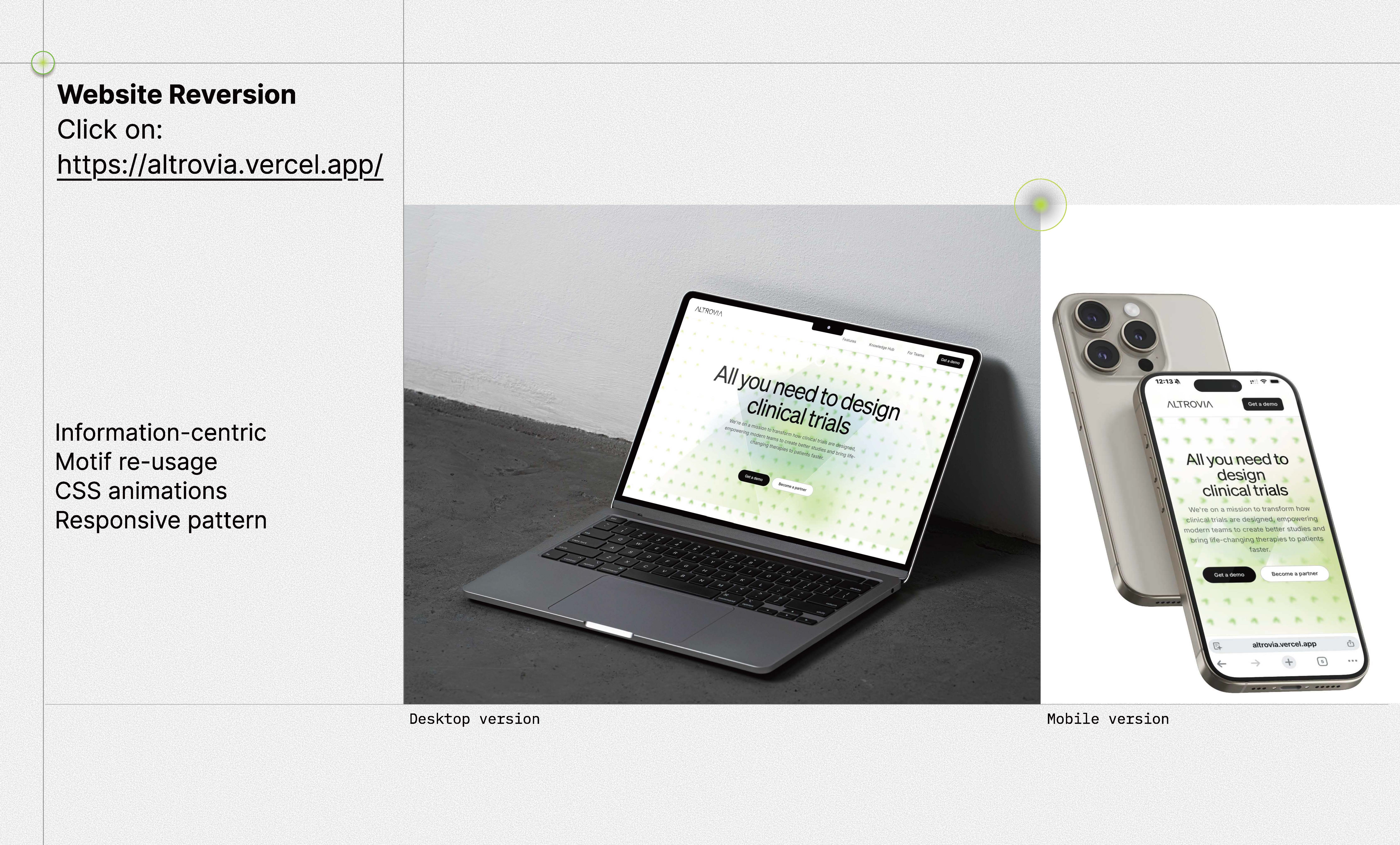 - Website Full Re-versioning: We redesigned the digital experience at https://altrovia.vercel.app/ to be information-centric. The UI utilizes the "^^" motif as a functional element—guiding the eye through complex data hierarchies.