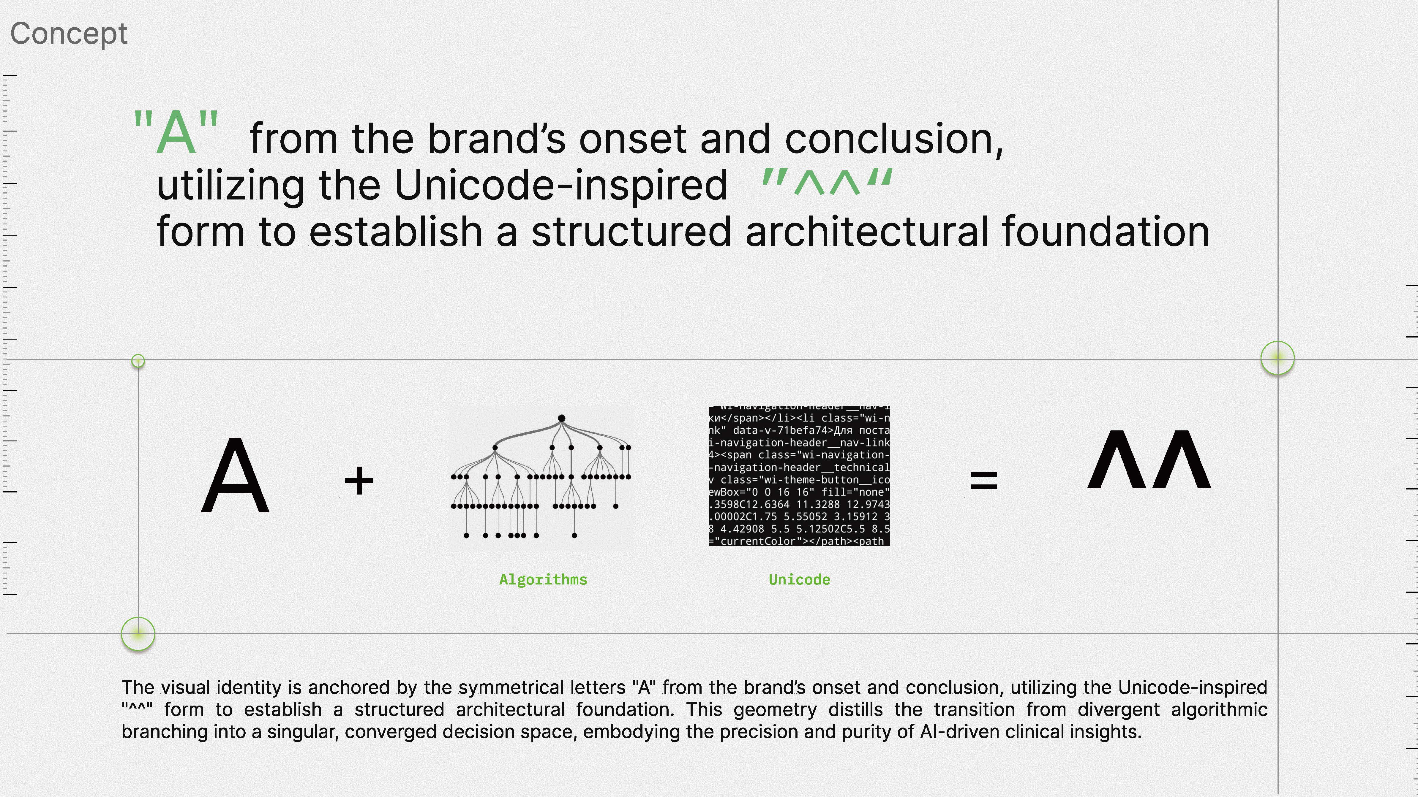 Next, we aim to refine the generative aspects of the motif—developing a script that allows the "^^" pattern to procedurally generate based on real-time clinical data inputs, making the brand's visual identity as live and reactive as the AI itself.