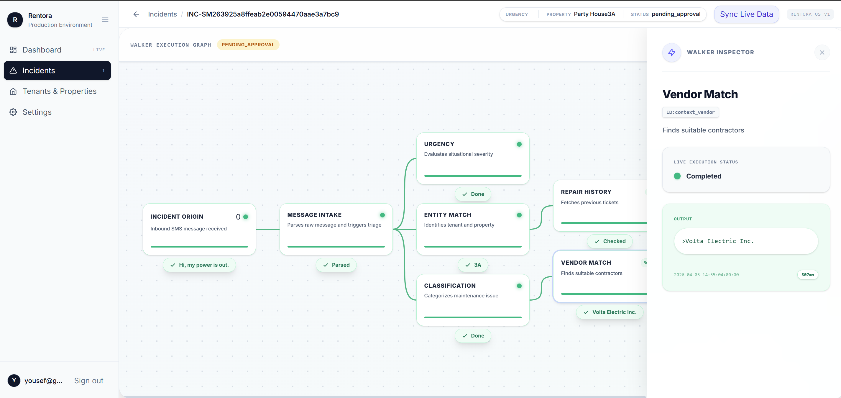 Rentora is an agentic property operations system. A tenant can send a message like “the heater in my unit stopped working” or “the sink is leaking,” and the system handles much more than just turning that into a ticket. It classifies the issue, pulls relevant context, checks history, finds the best next step, and supports dispatch and follow-up.