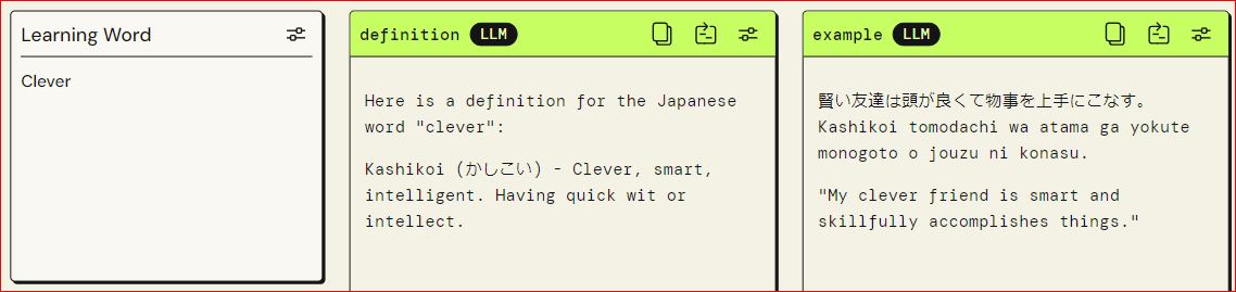 use an input box to type in a word in either English or japanese and return definition, translation, and example sentence