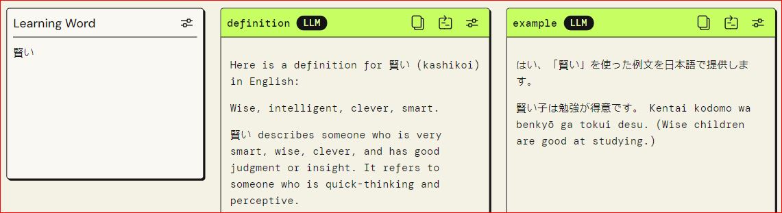 Still tweaking to see if we can expand the examples and definitions. Sometimes the definitions are in English only and sometimes are in Japanese