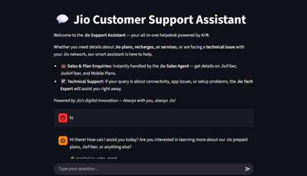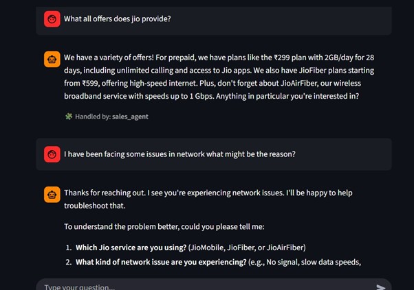 This system acts as an intelligent customer-support assistant that automatically understands what a user needs and routes the conversation to the right expert. Sales questions go to the Sales Agent. Technical issues go to the Tech Agent. If the Sales Agent realizes the user is actually facing a technical problem, it hands the conversation over smoothly. The assistant keeps track of the conversation, responds in natural language, and makes the entire experience feel more organized and less repetitive. Users get faster answers, fewer transfers, and clearer guidance all through a simple chat interface.