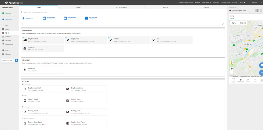 AppSheet Prototyp: Kartenansicht mit Filteroptionen an der Seite