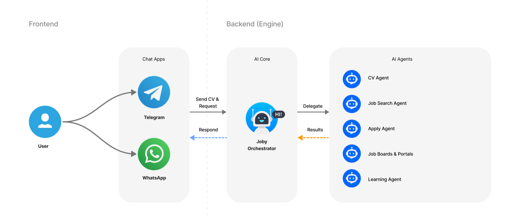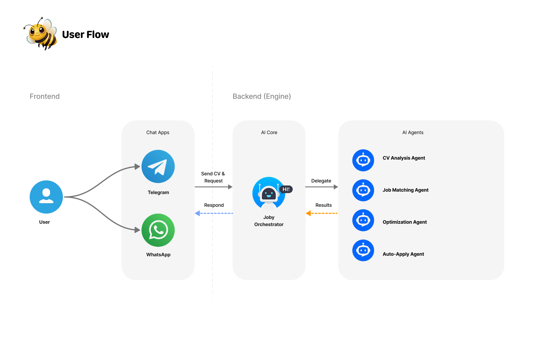 JobyHive operates through a modular multi-agent architecture, where each AI agent has a clearly defined responsibility: