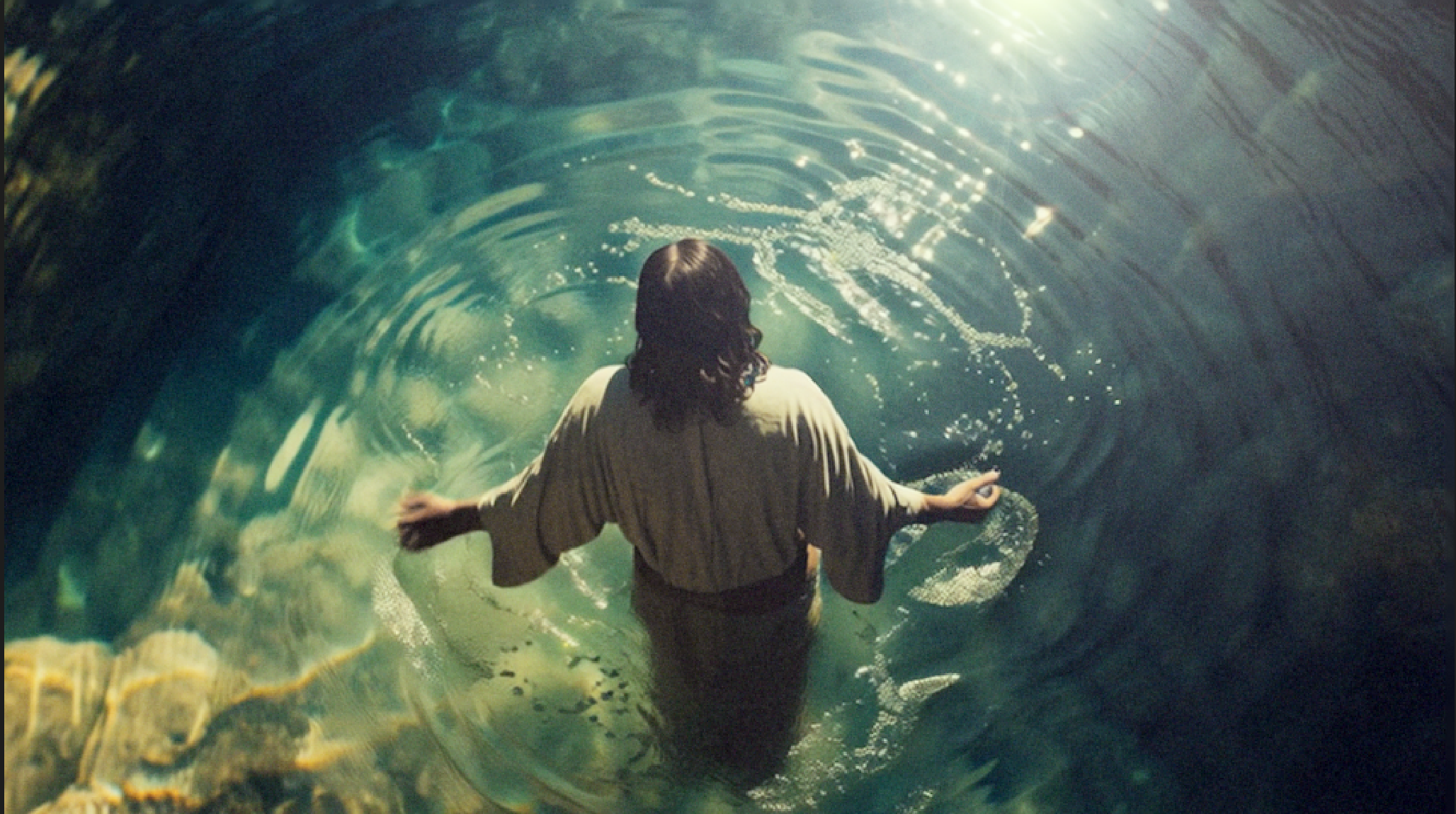 The Jordan ripples as John lowers Jesus beneath the surface. In that hush of water, destiny presses heavy, undeniable. Rising, breath surges, and with it—clarity. Resolve radiates from his eyes, a foreshadow of flame. This baptism is more than water; it births the one who will ignite hearts with fire eternal.