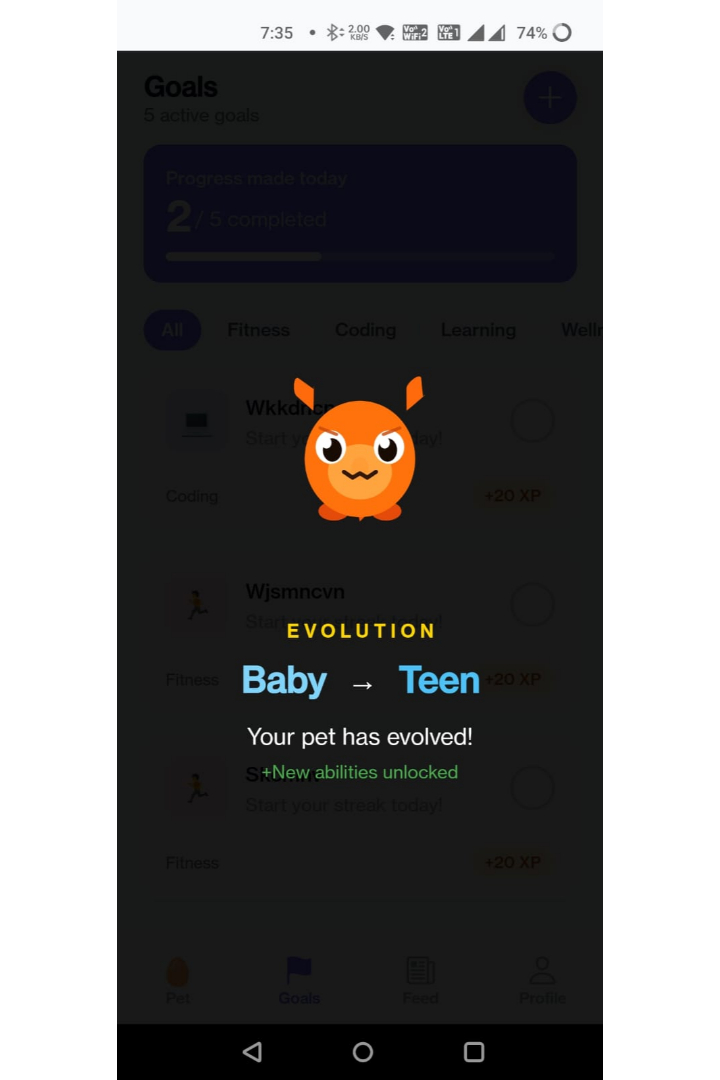 Consistency earns XP and streaks, allowing pets to evolve through stages: