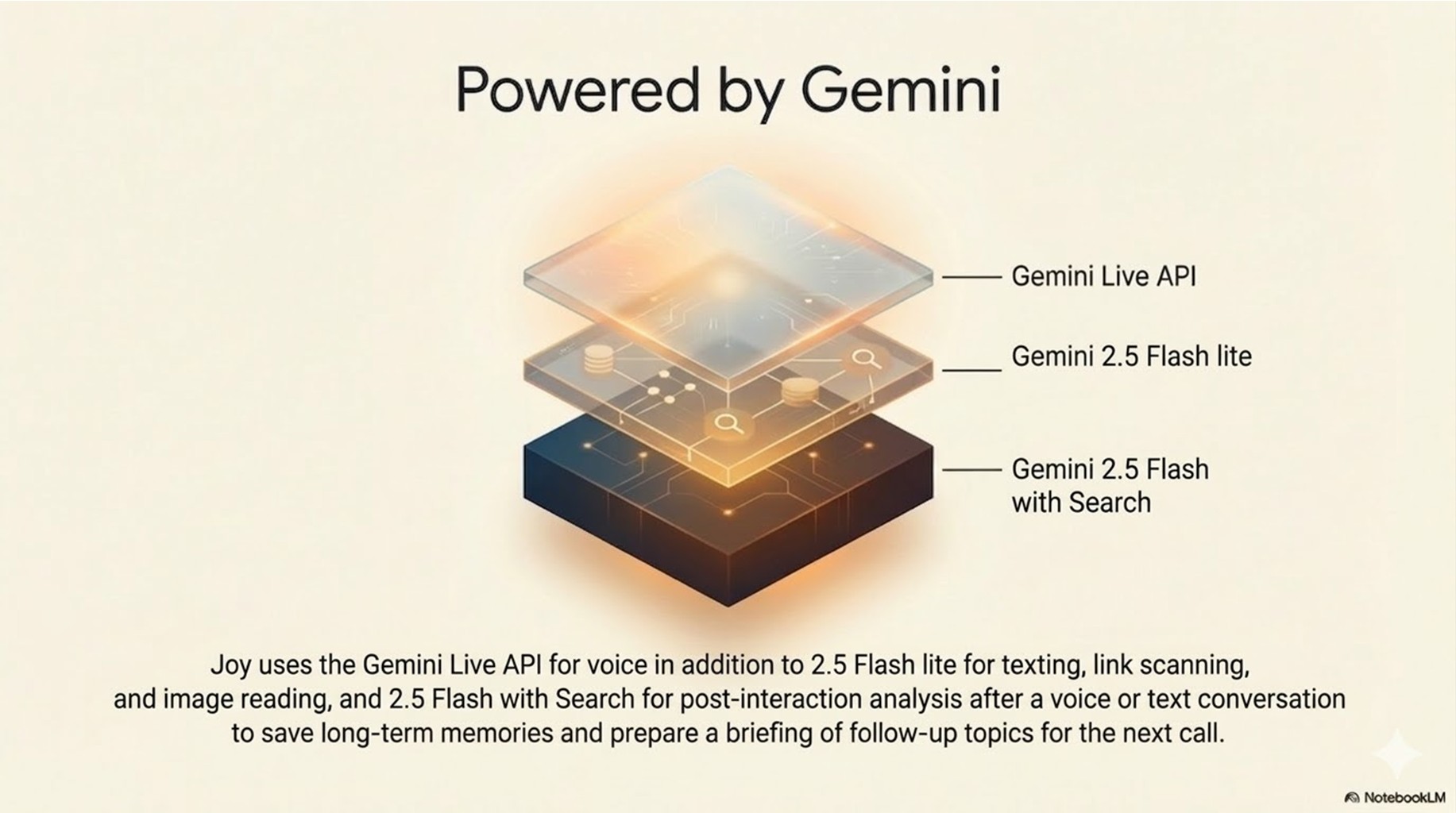 - Level 4 (Google Search): Real-time web access for grounding Joy's advice in live data.
