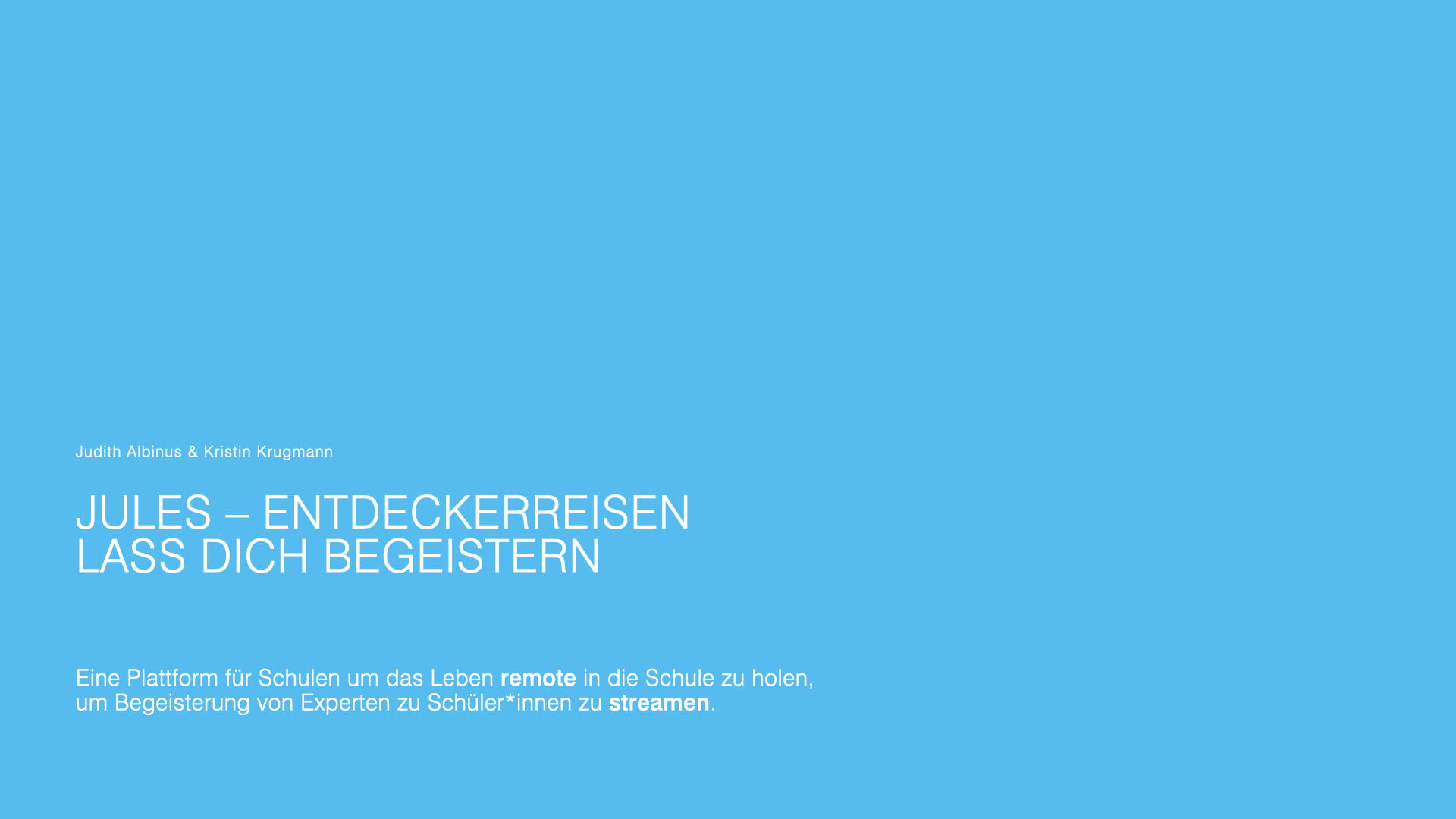 Ein remote Angebot an die Schulen deutschlandweit. Mit Potential zum weltweiten Rollout.