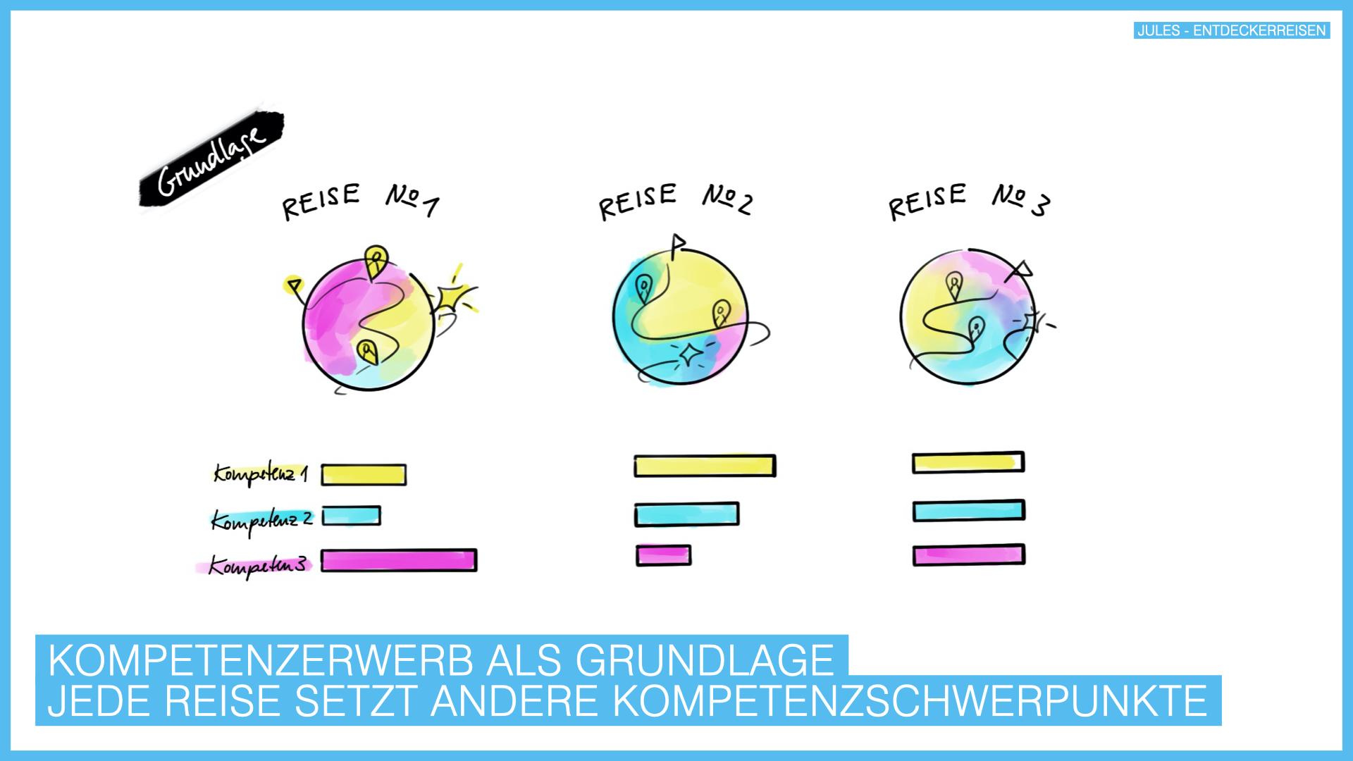 Kompetenzerwerb als Grundlage Messbare Lernfortschritte durch Kompetenzmodell und Kompetenzfeststellungstools strukturieren jedes Lernabenteuer. Jede Reise setzt andere Kompetenzschwerpunkte.