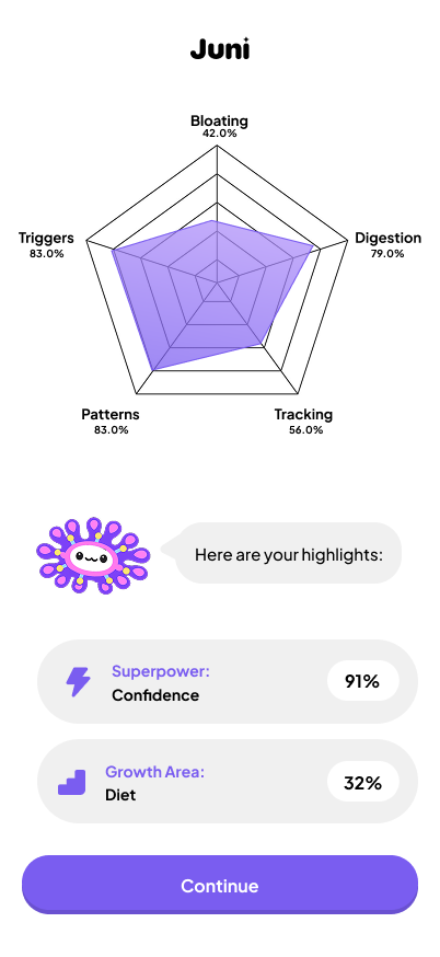 Juni is an AI-powered gut health coach that helps users understand how food, sleep, stress, anxiety, and hormones affect how they feel. Users log meals and symptoms, and Juni connects patterns over time to surface likely triggers. It also generates simple summaries that can be shared with doctors to improve follow-ups and care. The app is guided by friendly gut bacteria mascots that make tracking feel less clinical and more intuitive, almost like a companion system for your health.