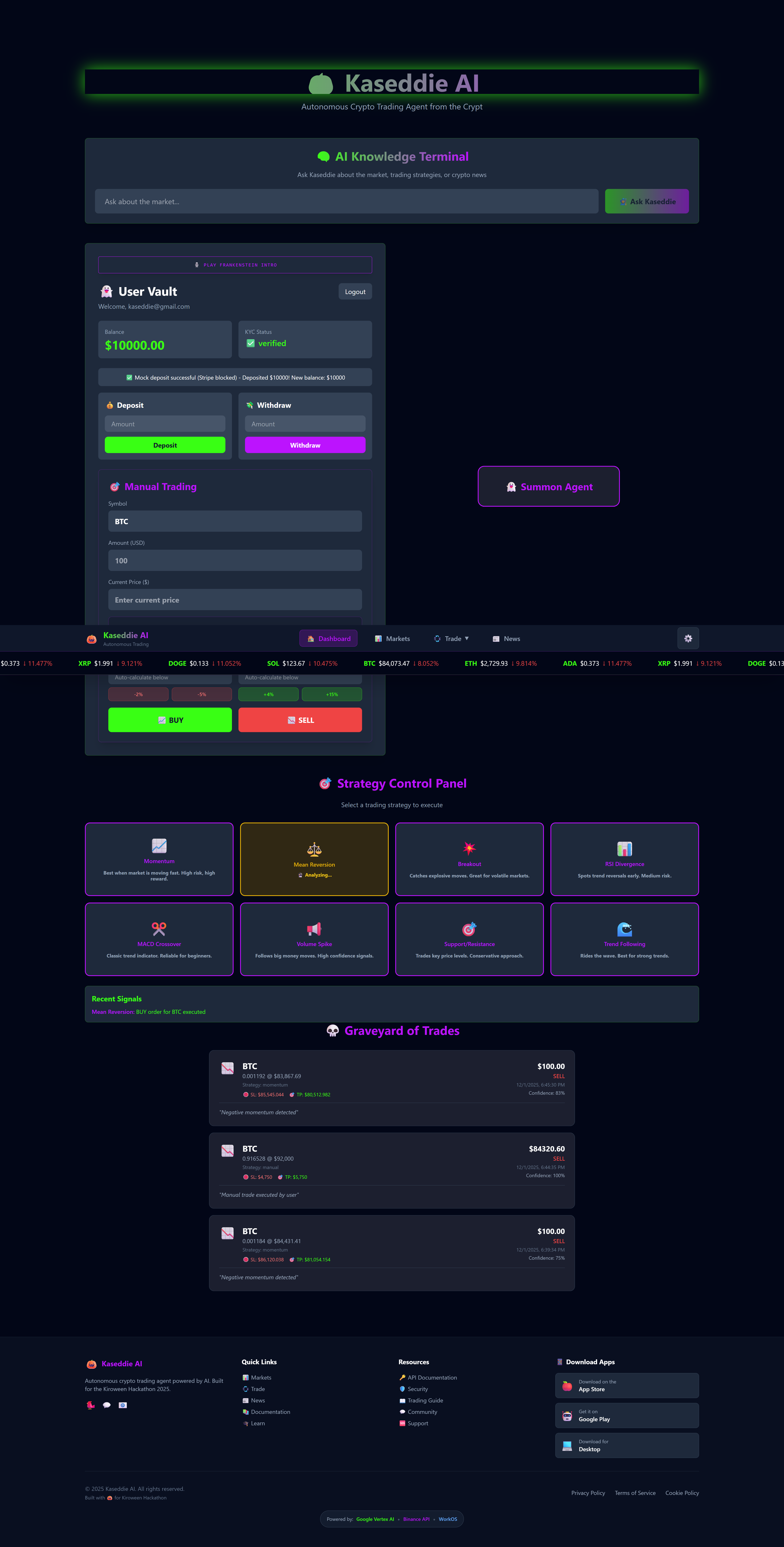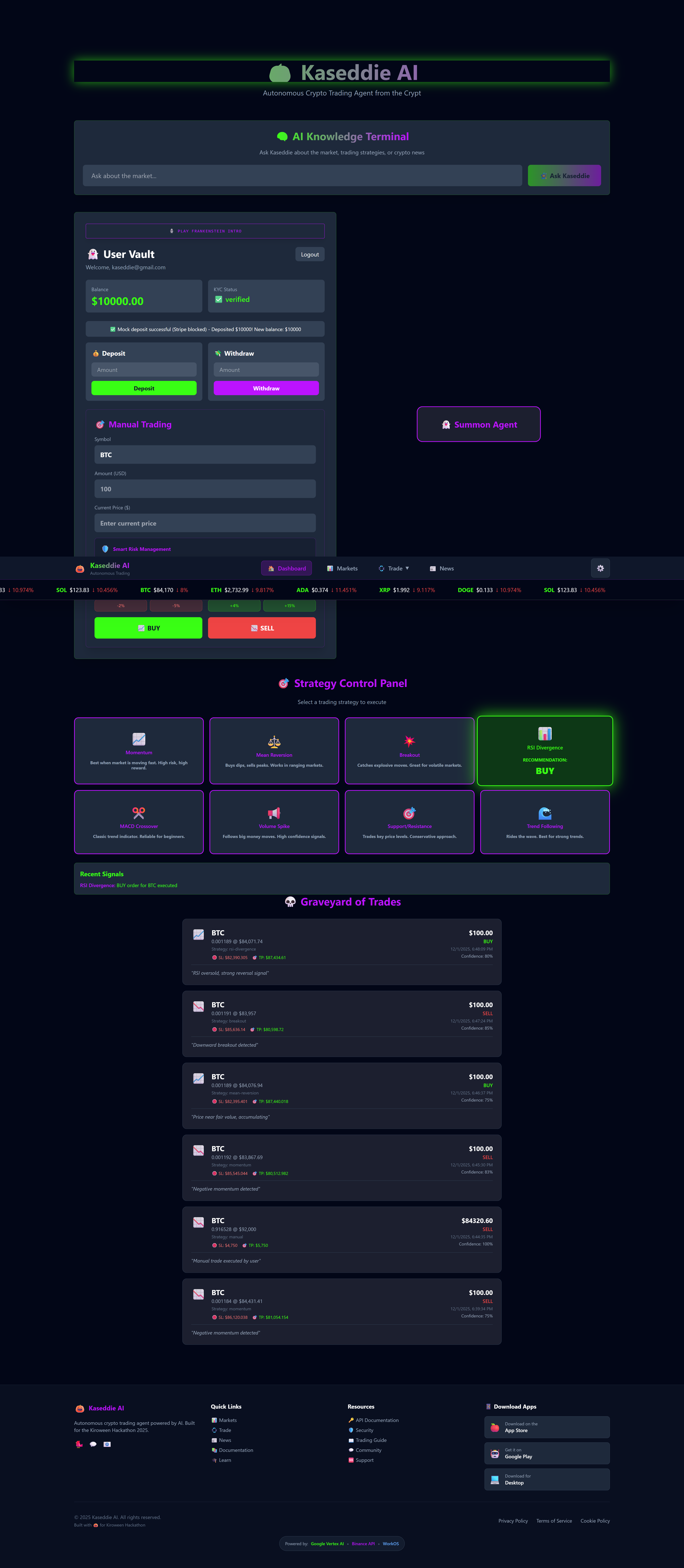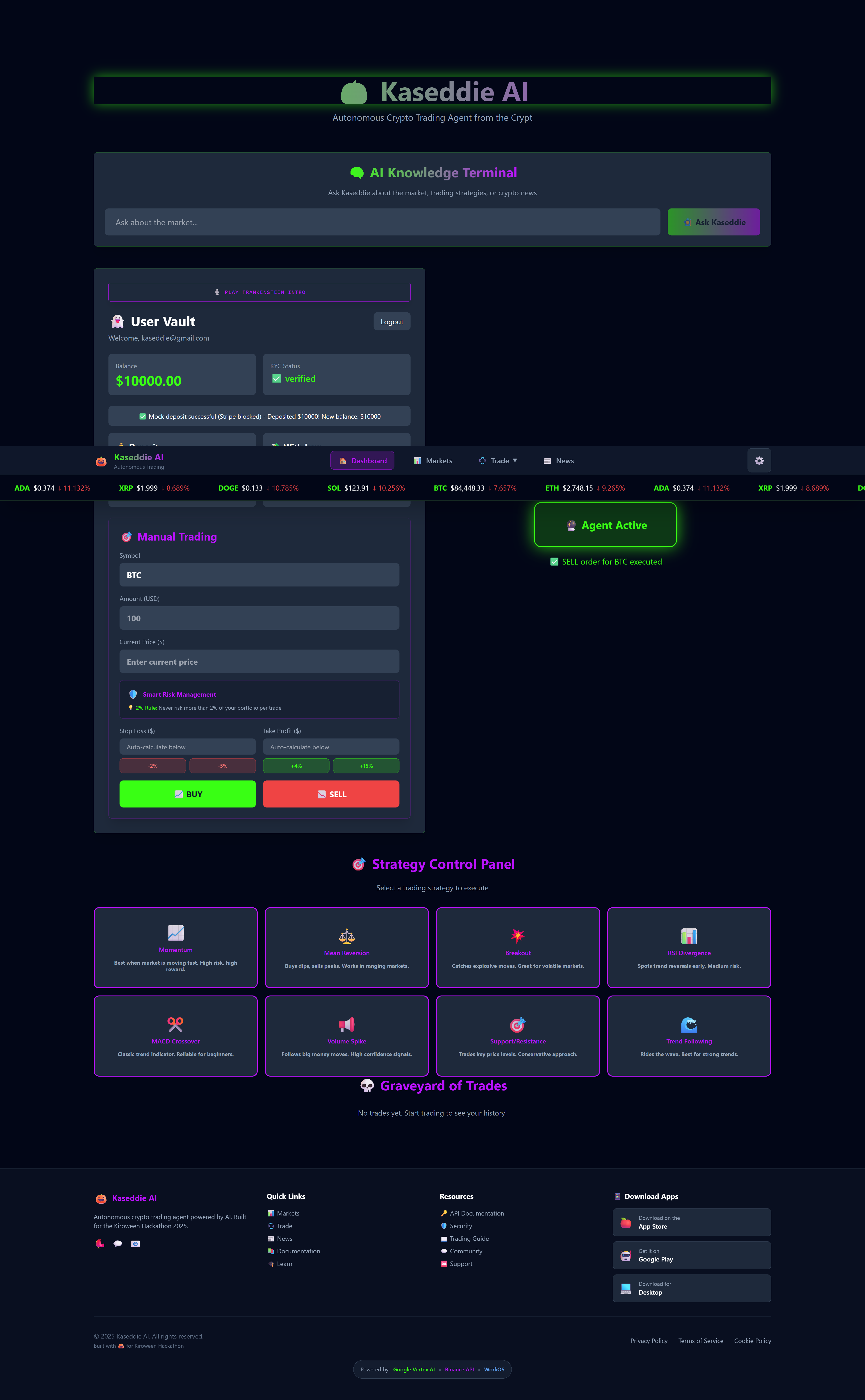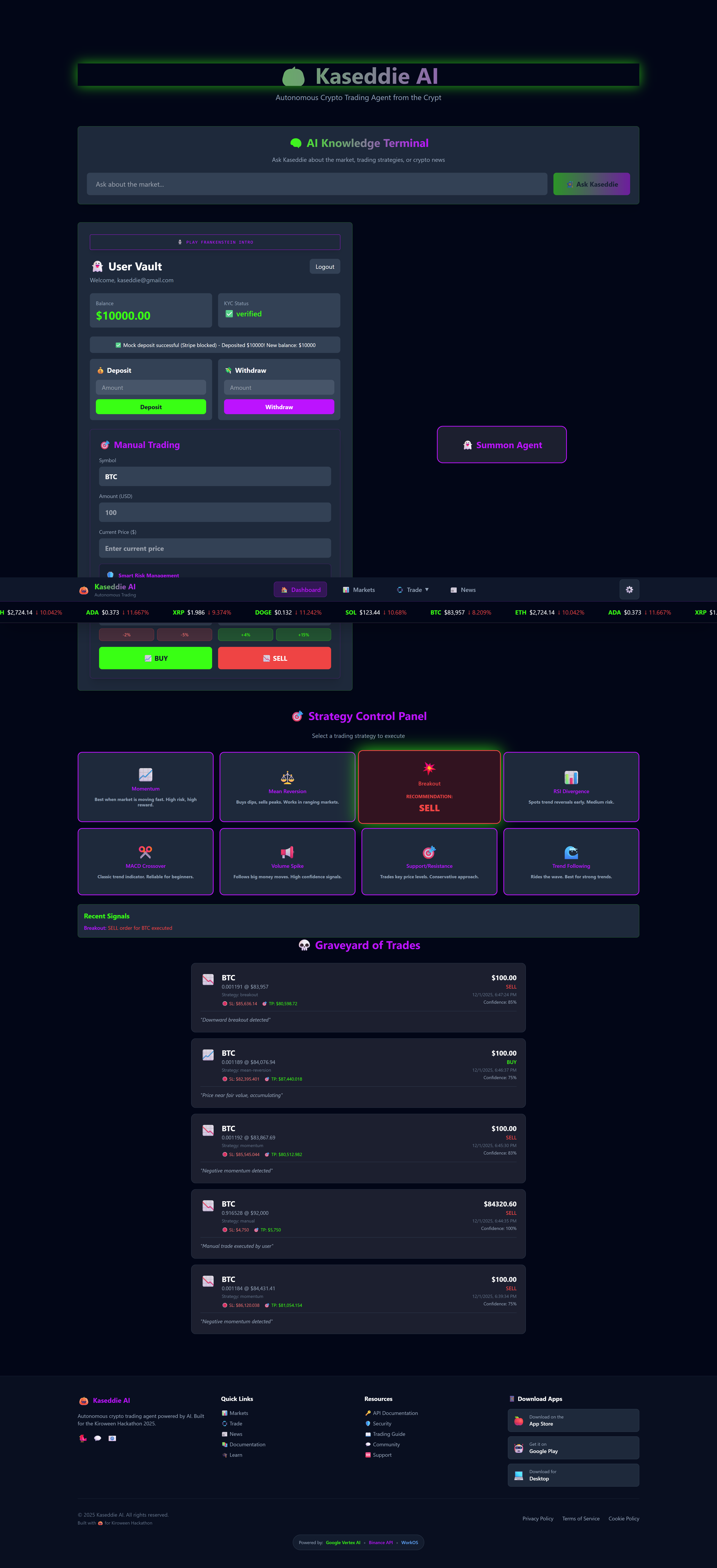 Kaseddie AI is a "Frankenstein" creation, stitching together the web's most powerful APIs into a cohesive trading platform for solo founders.