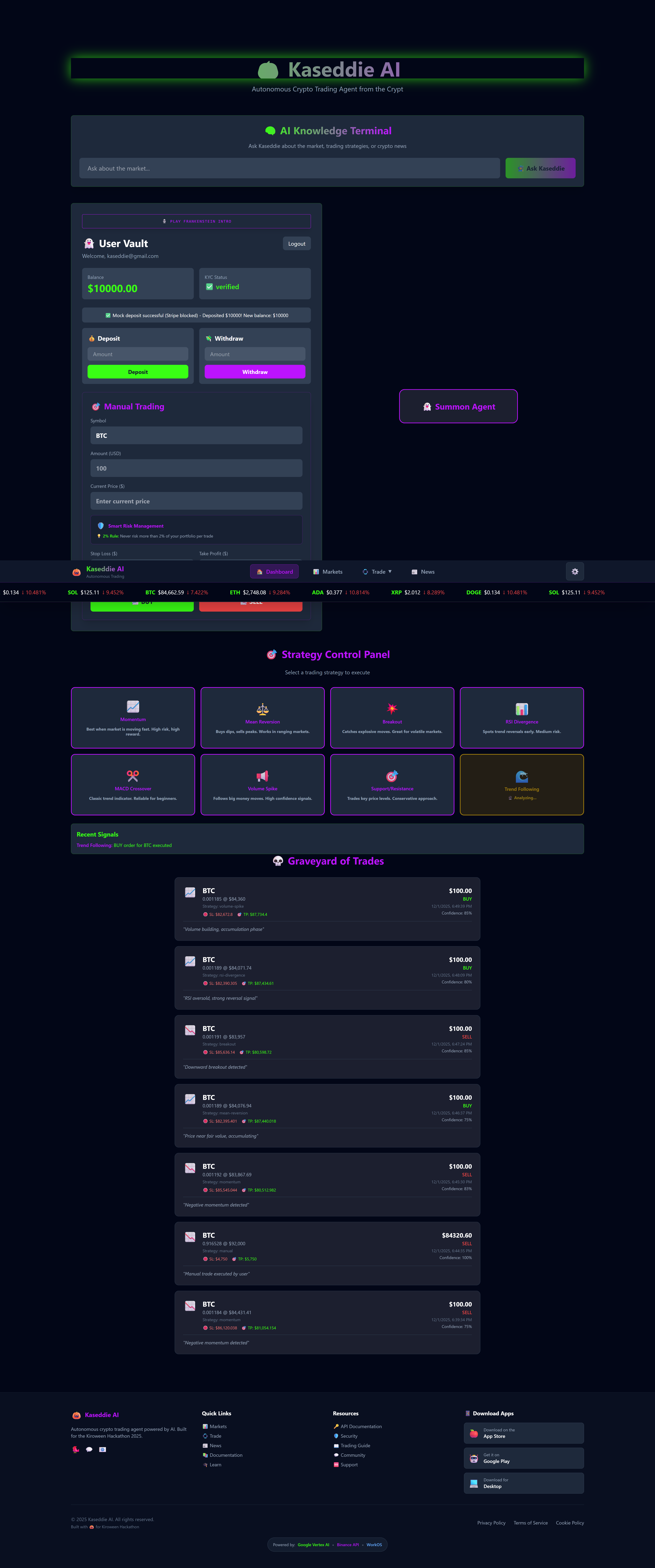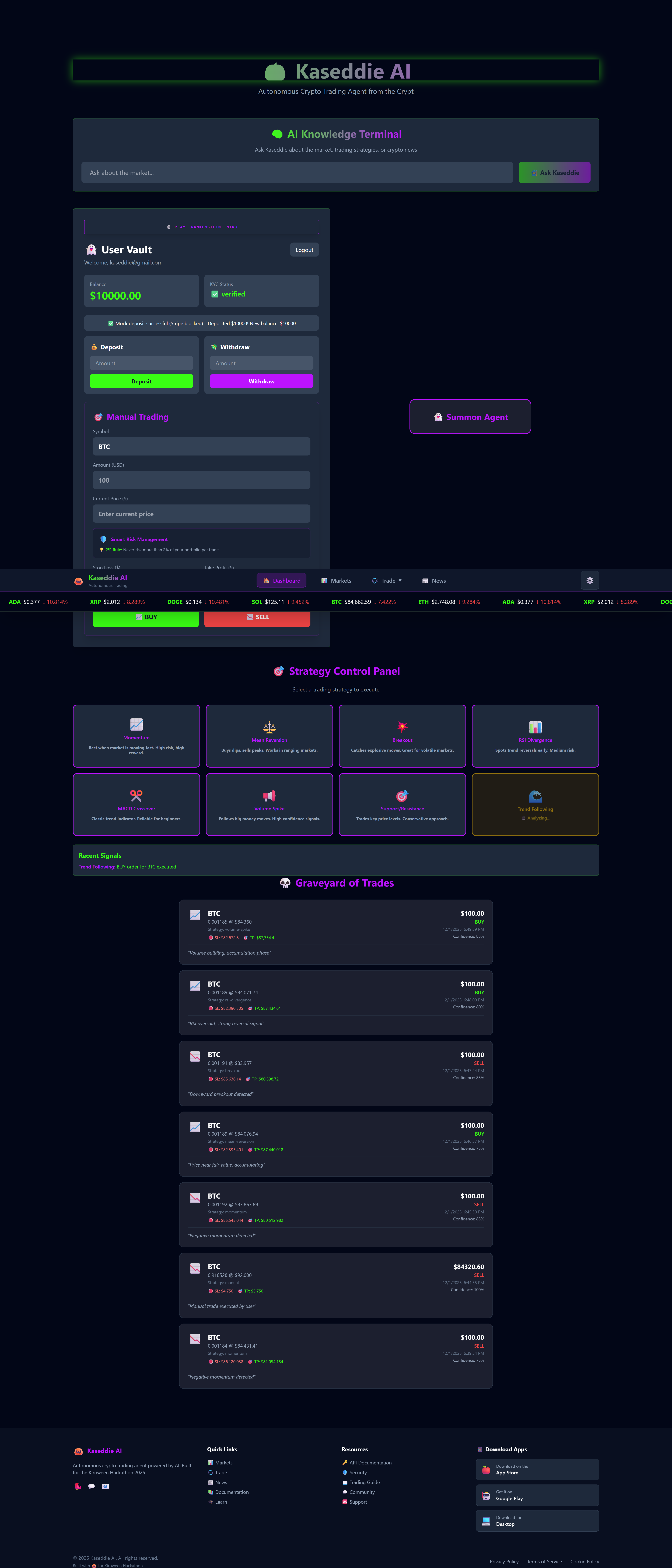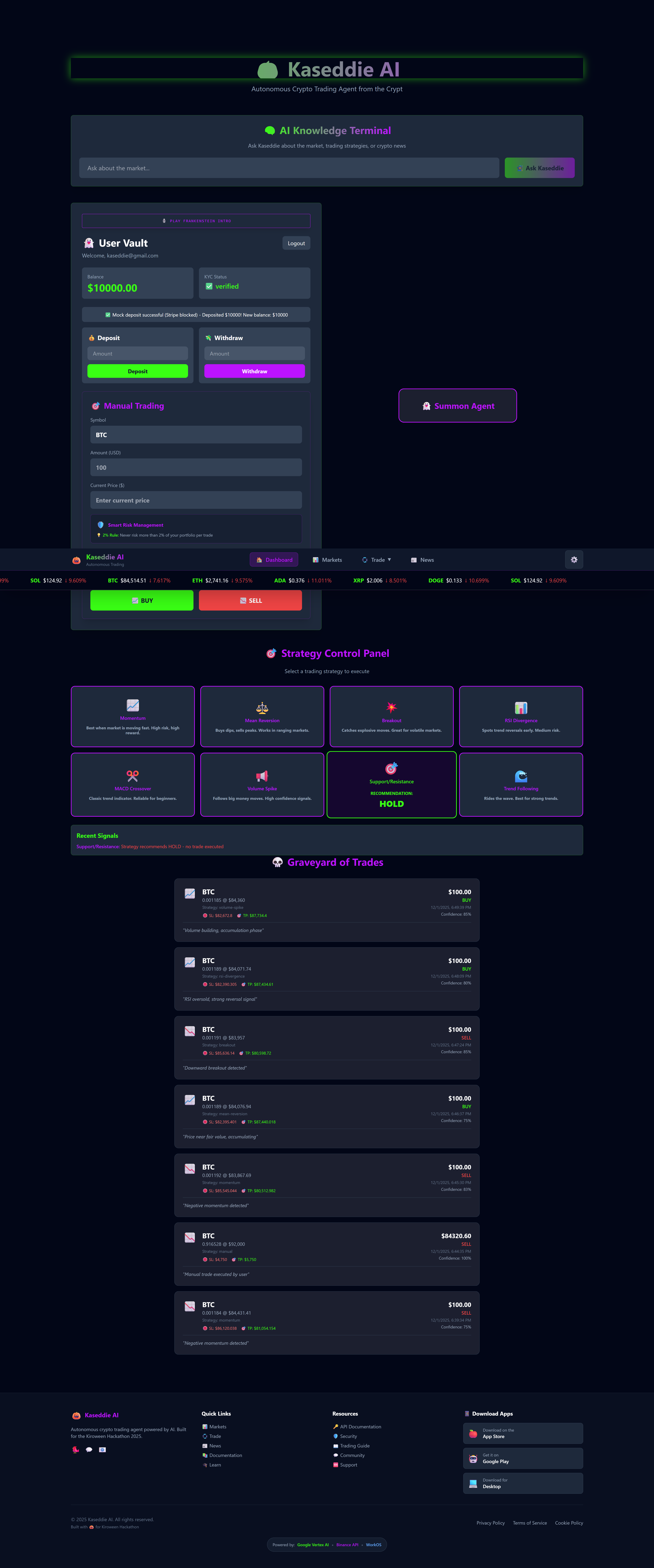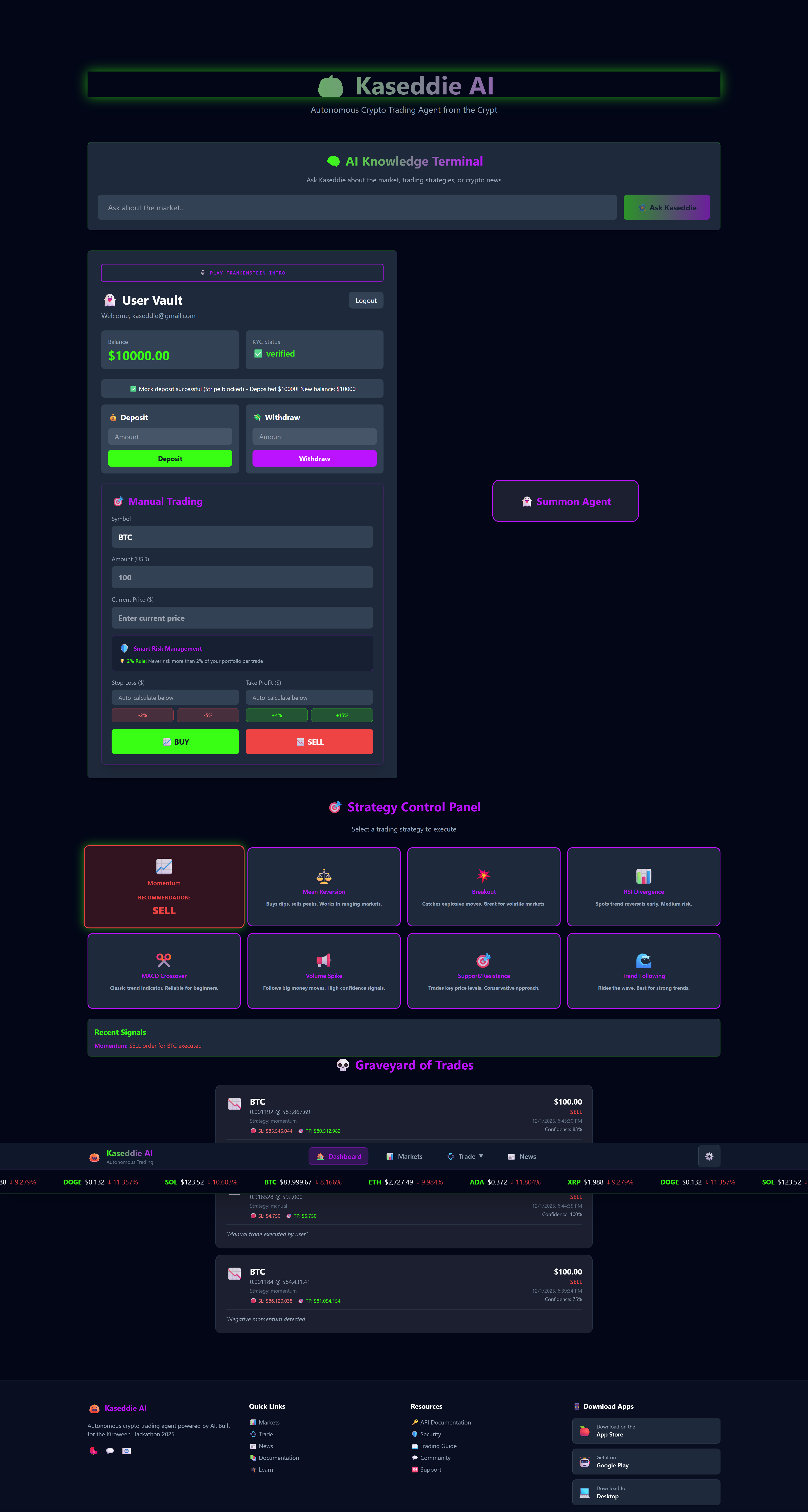Kaseddie AI is a "Frankenstein" creation, stitching together the web's most powerful APIs into a cohesive trading platform for solo founders.