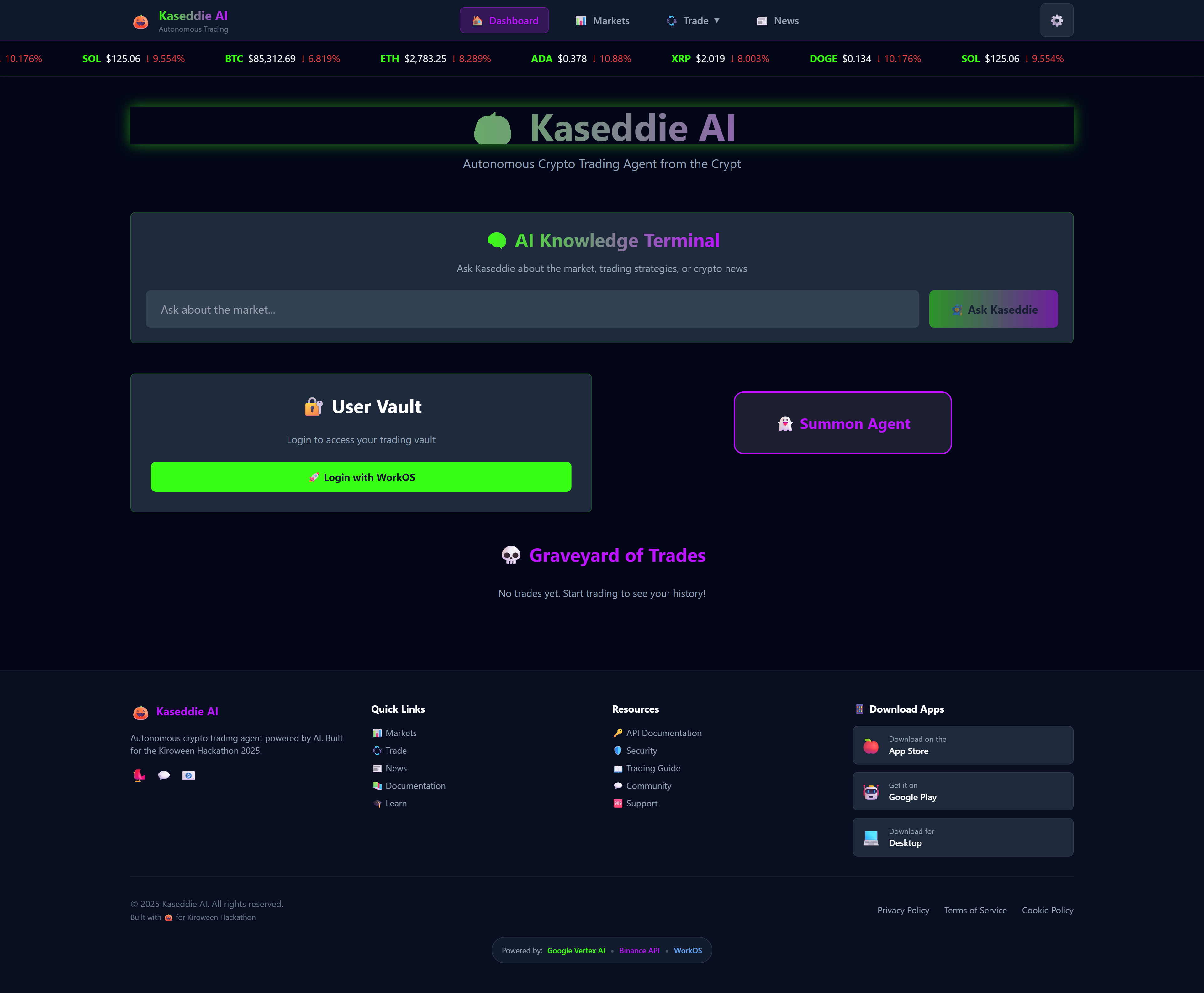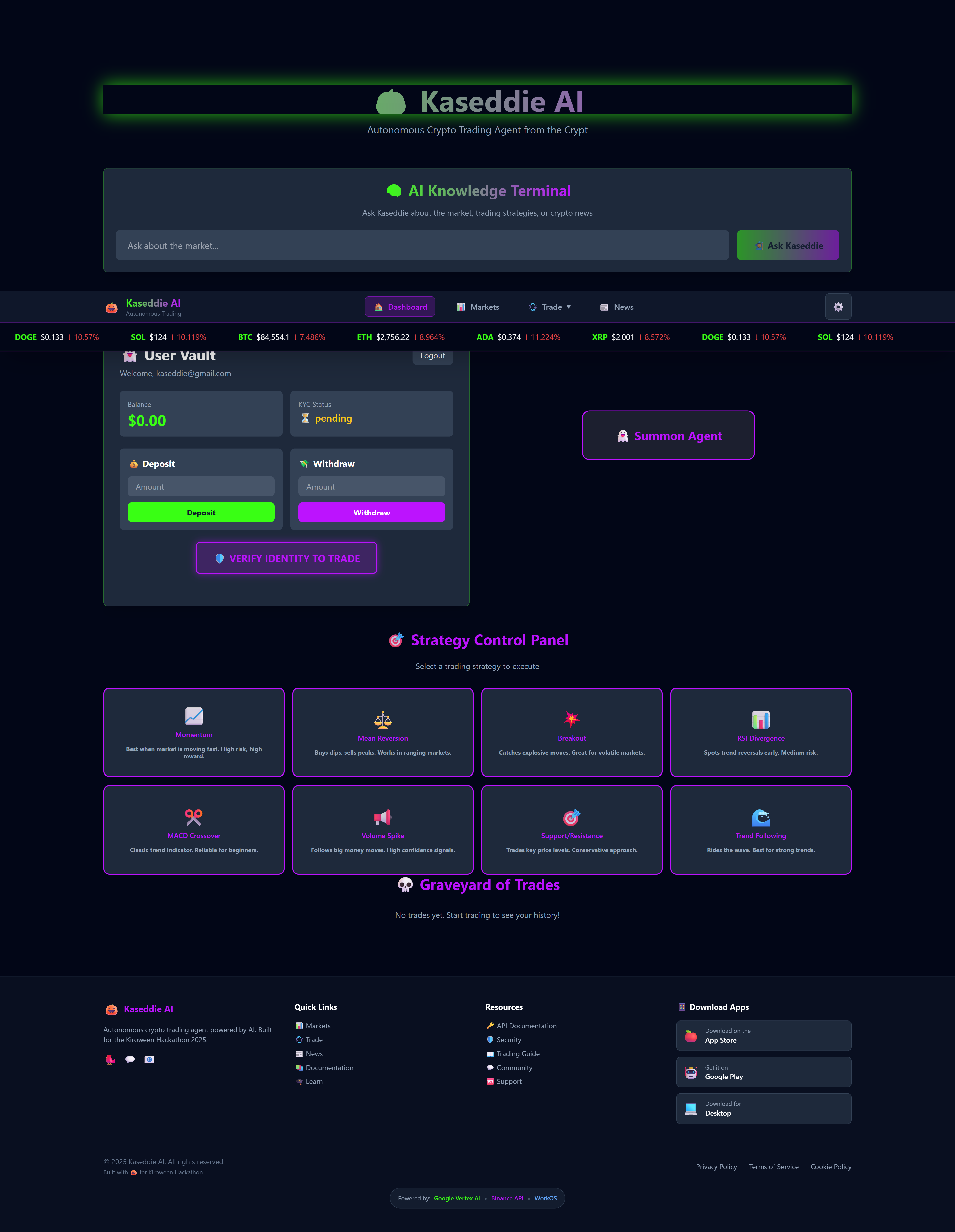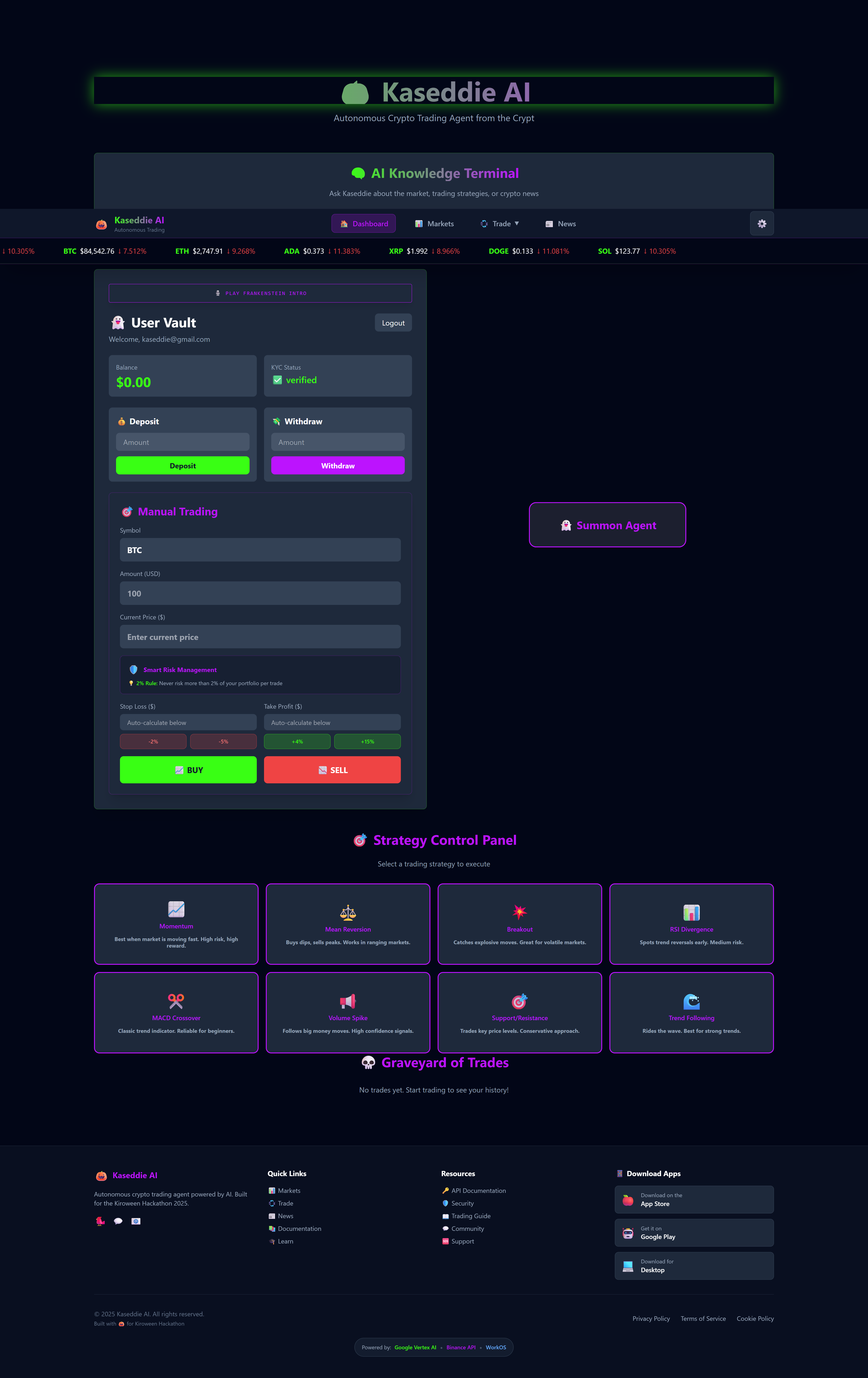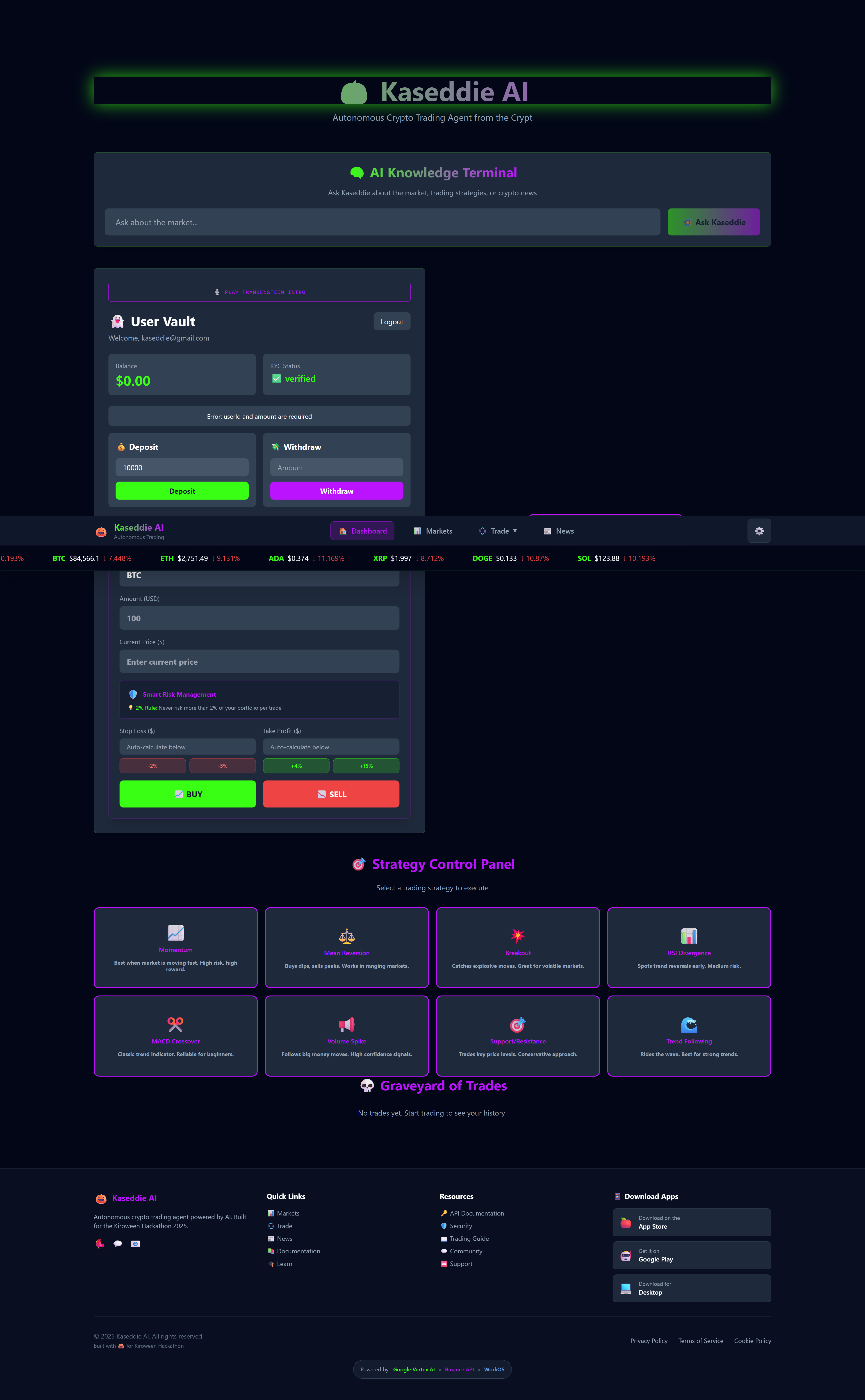 Kaseddie AI is a "Frankenstein" creation, stitching together the web's most powerful APIs into a cohesive trading platform for solo founders.