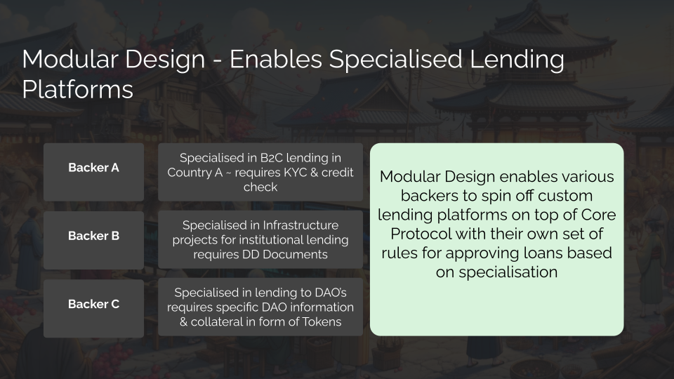 The inspiration for Kashidashi Finance stemmed from the glaring gap in the DeFi lending market - the prevalence of overcollateralized loans. We observed how this model significantly limited access to credit for many potential borrowers who lacked sufficient collateral. Inspired by the more inclusive and flexible lending practices of traditional finance (TradFi), we set out to create a DeFi protocol that facilitates undercollateralized lending, thereby democratizing access to credit in the decentralized space. For mechanics used in Kashidashi we have taken inspiration from existing Credit protocols such as Maple & Goldfinch with the goal of improving some key mechanics in these protocols to develop a more scalable protocol.