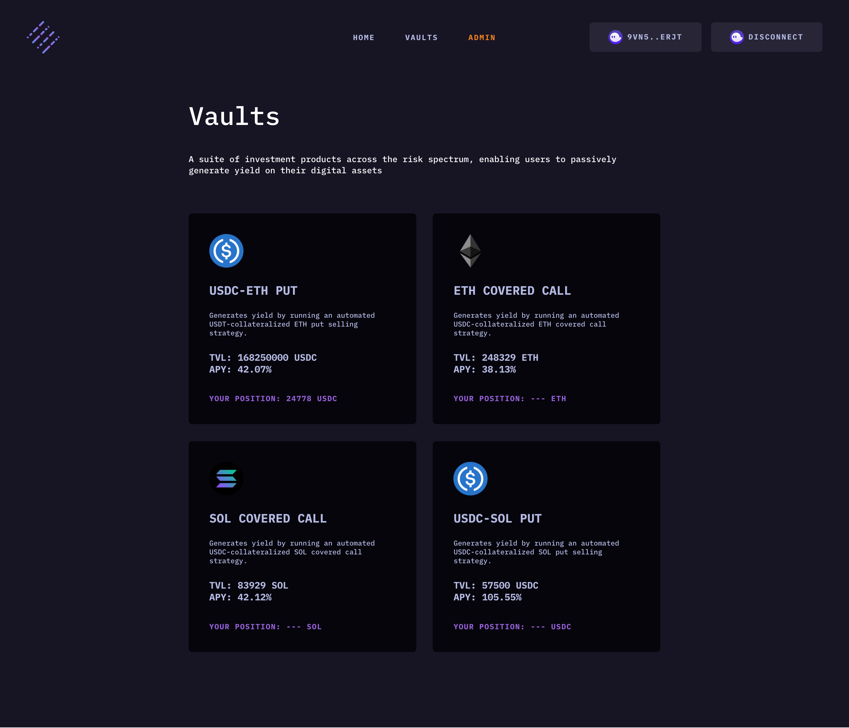To this end, our core product suite is comprised of automated vault strategies and structured products--similar to Yearn and Ribbon Finance on Ethereum--and we look to expand into more exotic product lines in the near future.