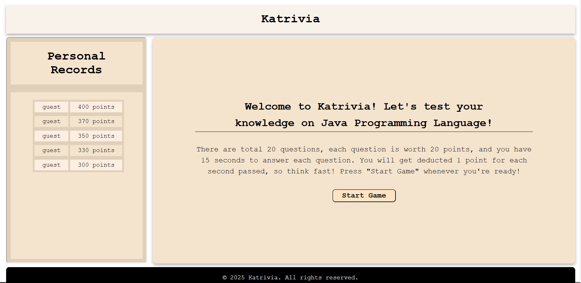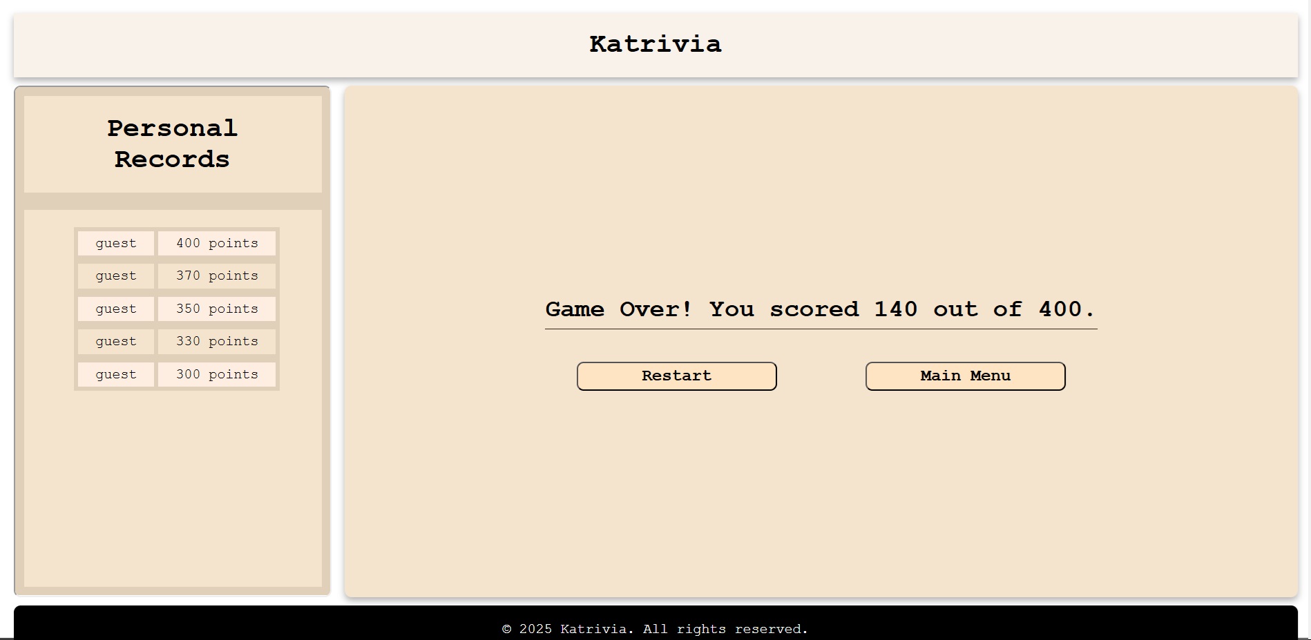 We will keep perfecting Katrivia, polishing the current features, and potentially adding new ones. Hopefully in the future Katrivia can become a full-stack web with a better front-end, and a solid back-end.