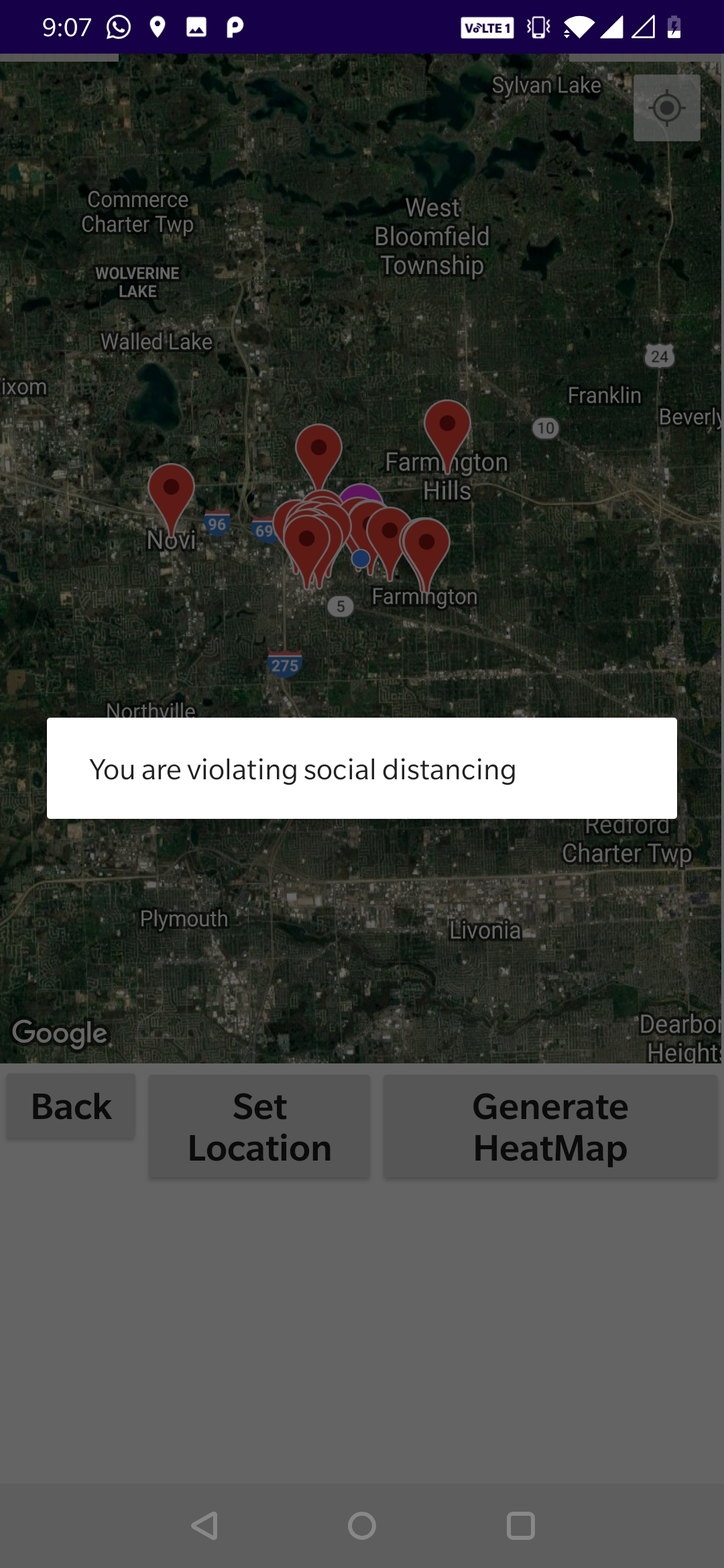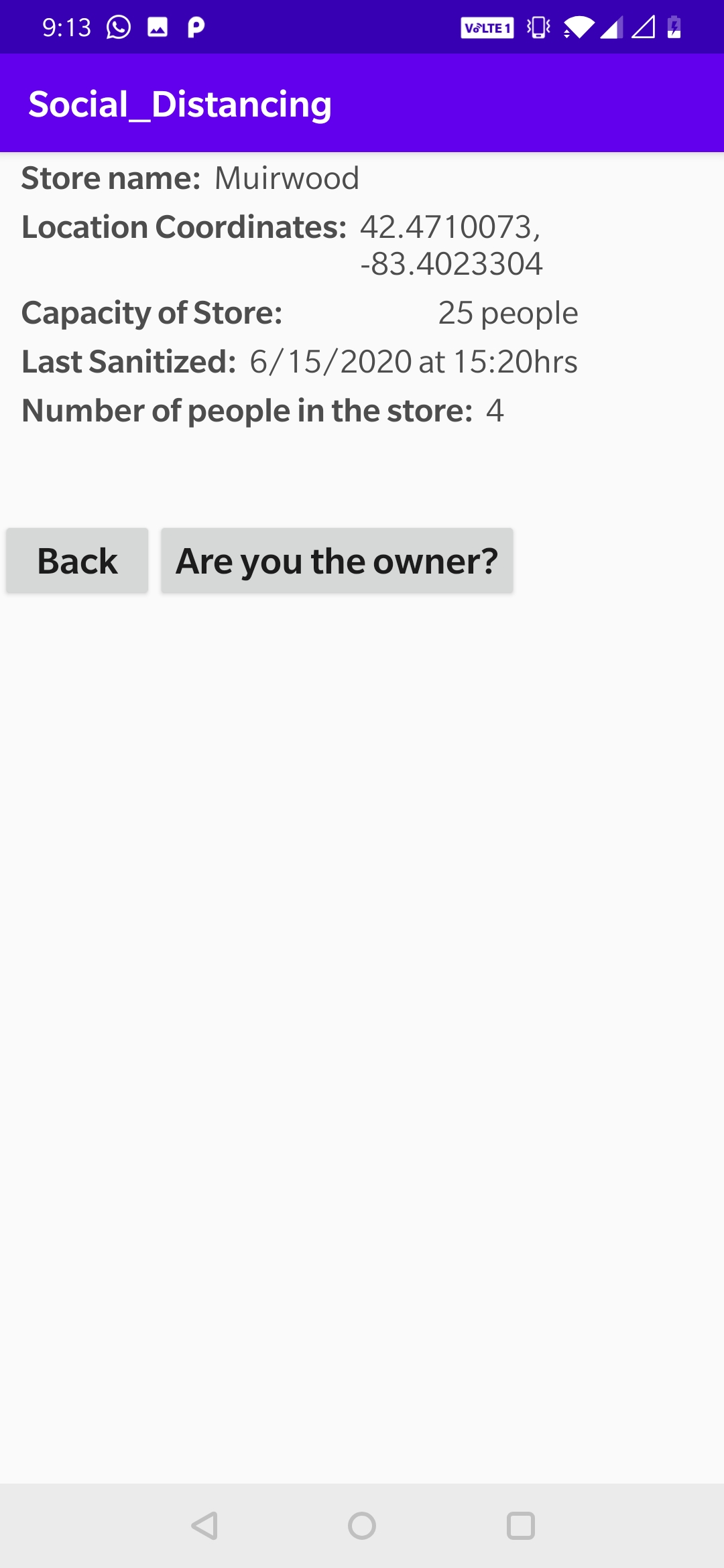 Our android app solves two main problems. Firstly, it helps maintain social distance between individuals who use the app. It can measure the distance between two individuals and provides an alert whenever you are too close. Thus, it helps reduce the chances of contracting COVID-19. Secondly, it identifies nearby stores and public buildings and gives you information such as the number of people in the store, the maximum people who can be in the store safely as well as when the building or store was last sanitized. This allows people to make informed decisions on whether going to a building is safe or too risky and hence can reduce the possibility of the spread of COVID-19.
