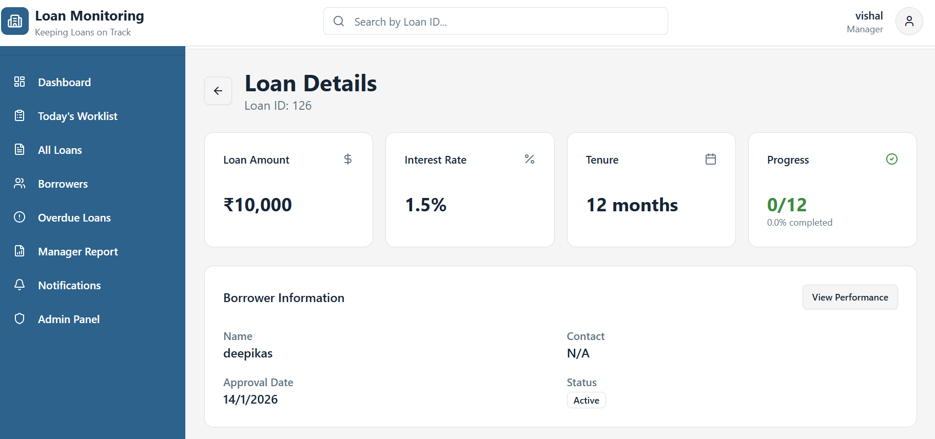 Keeping Loans On Track continuously monitors loan performance using day-wise repayment behavior, provides AI-assisted risk insights, and enables role-based governance across supervisors, managers, and borrowers. It helps lenders identify early warning signals, prioritize follow-ups, and make informed re-loan decisions—while keeping all financial control with managers.