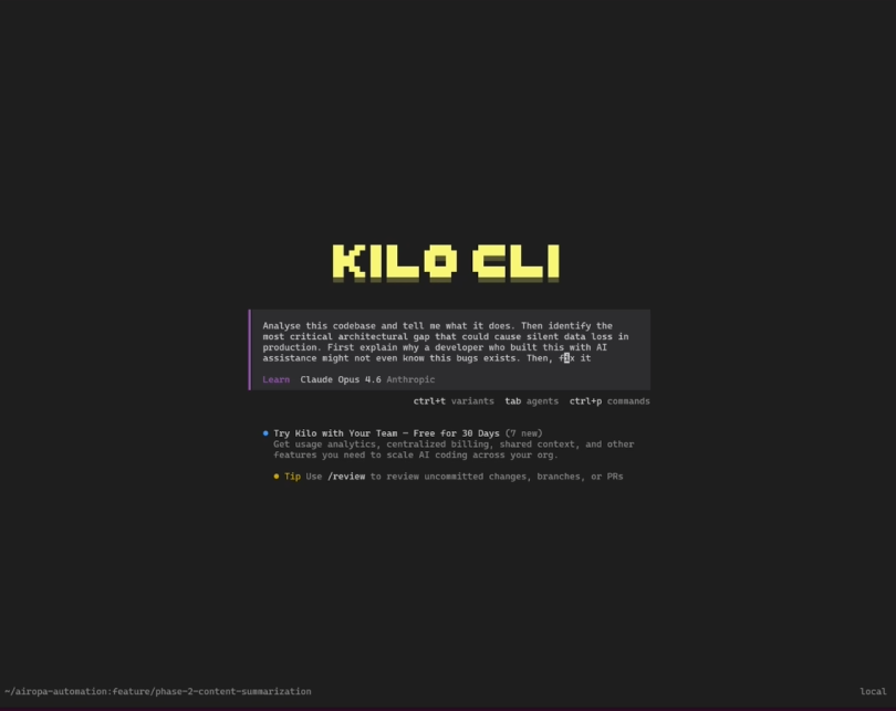 - Kilo Code CLI (open source AI coding agent)