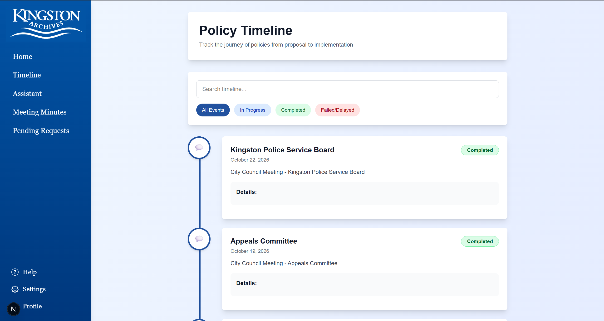 - Timeline - Browse past documents in the order of establishment/occurrence