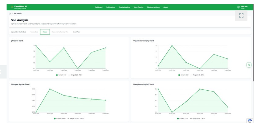 🎤 Voice Assistant: Farmers can ask questions in their local language and get instant answers 📸 Crop Quality Grading: Upload images to assess produce quality and estimate market price 🌱 Soil Analysis: Extract and analyze soil health data from images 🌾 Crop Advisory: Get recommendations on what to plant, when, and how 📊 Real-time Insights: Access live mandi prices and weather updates