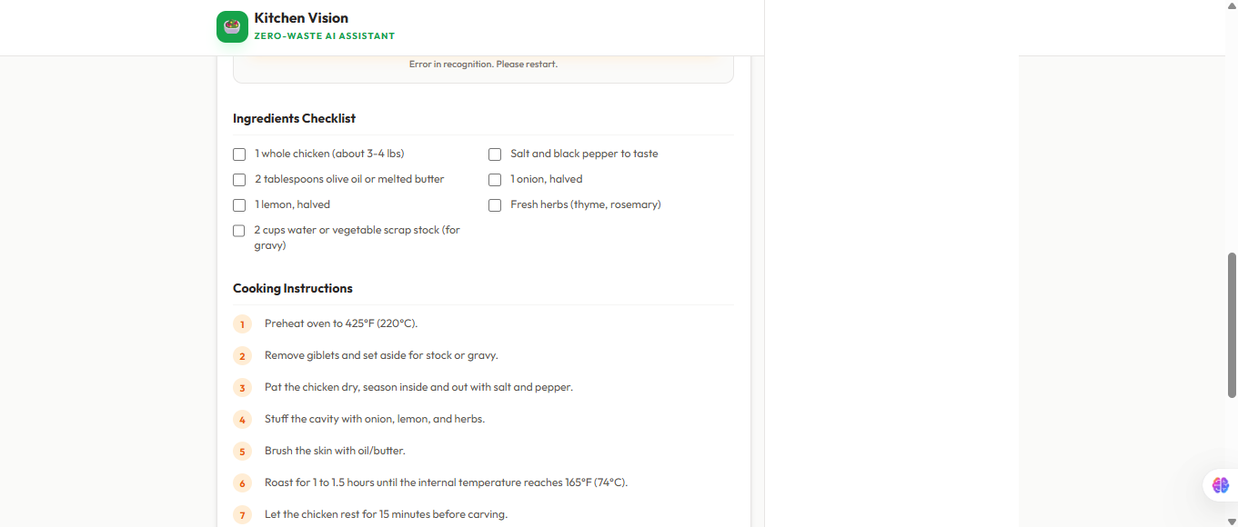 Recipe Suggestions: Suggest meals based on the ingredients currently "seen" in the kitchen.