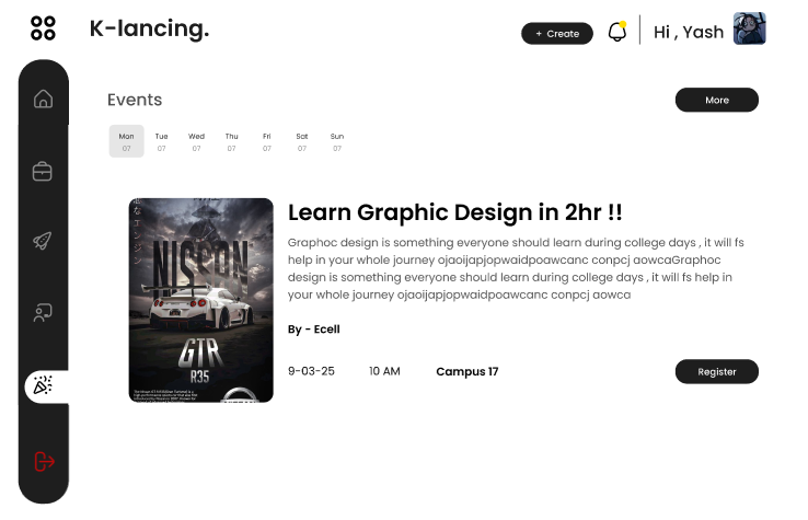 Building a fully verified, campus-only freelancing model that actually solves a real student problem. Designing a complete UI that makes the process simple, safe, and transparent. Creating a ranking and review system that helps identify genuine skills instead of fake claims. Turning a common frustration (WhatsApp chaos) into a structured, working product concept.