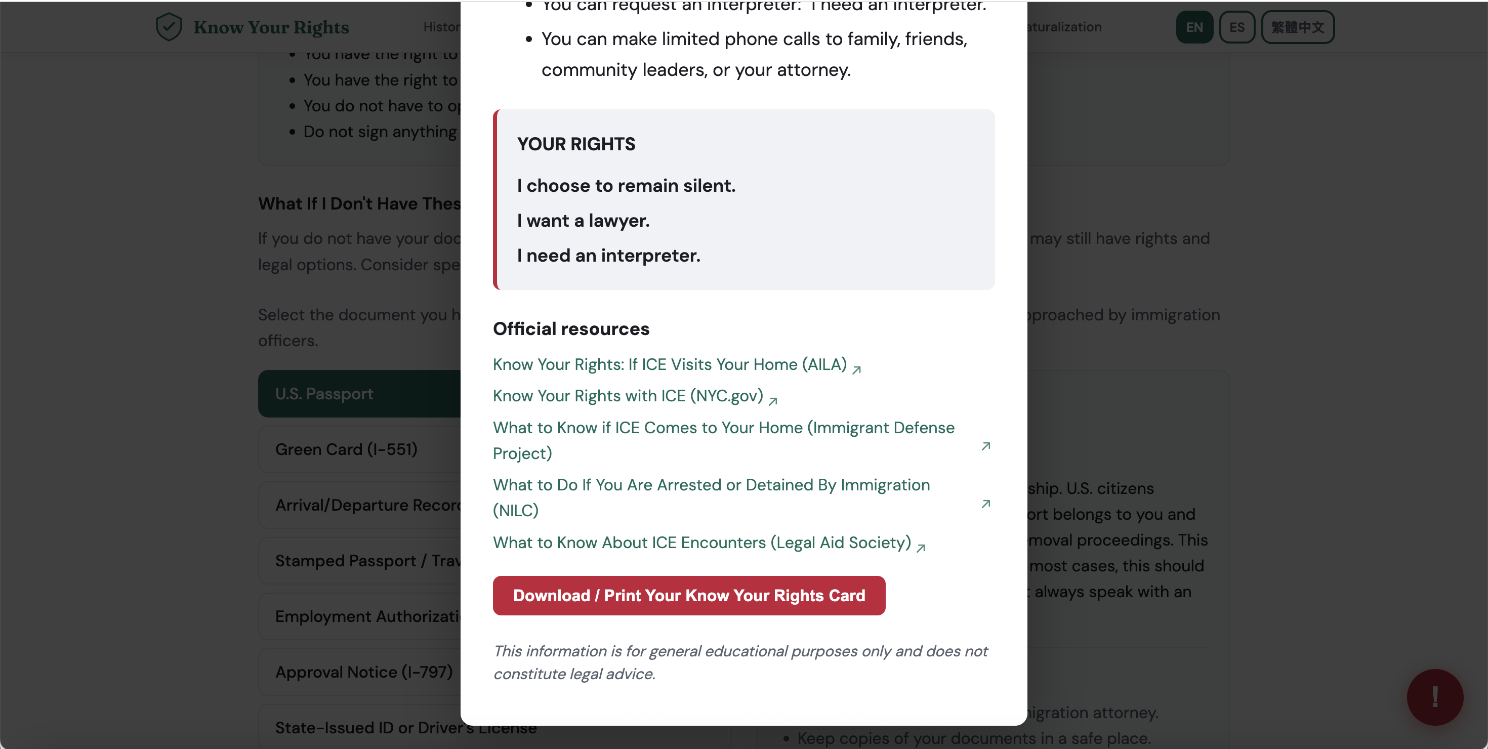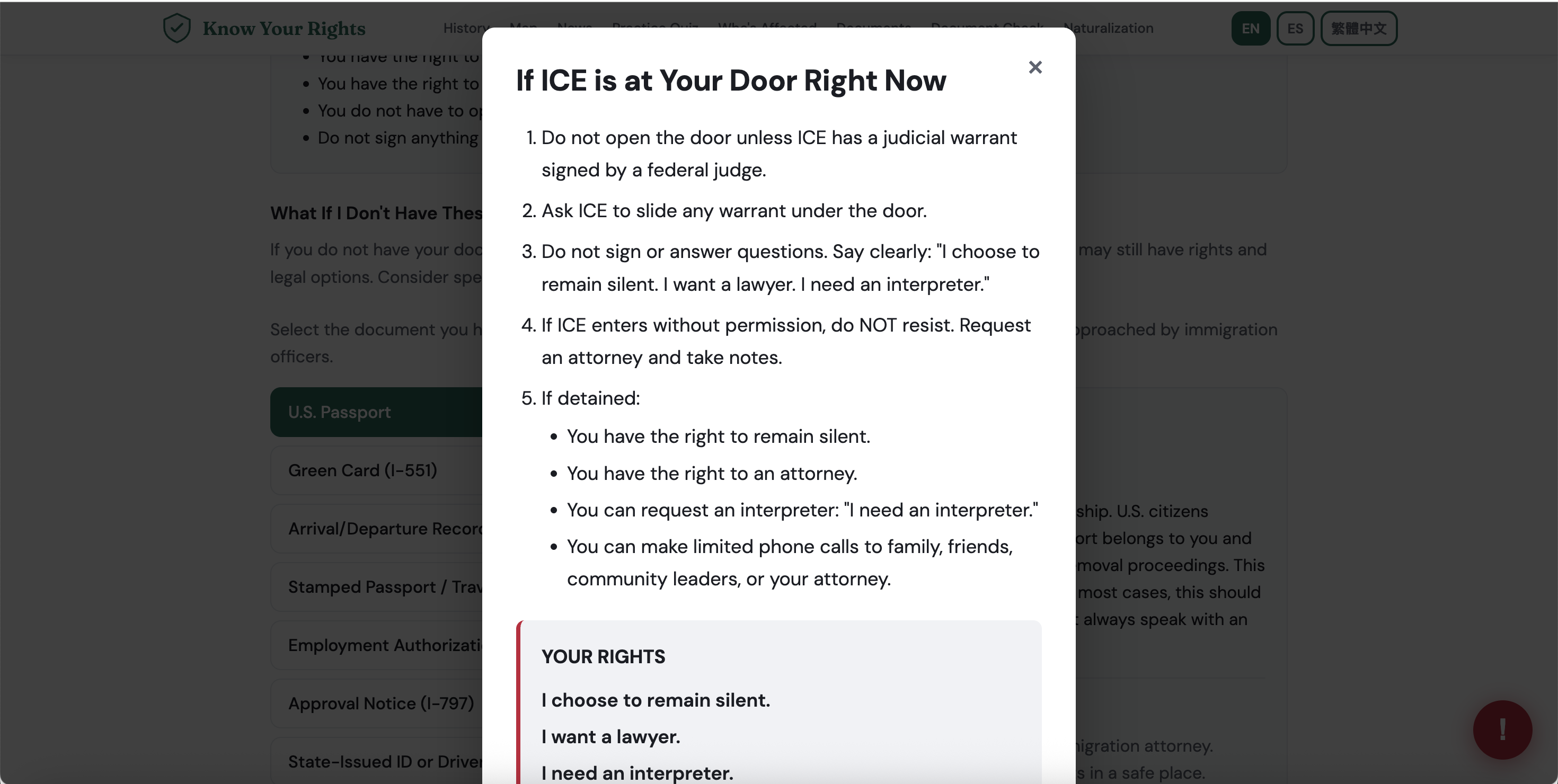 We started with a simple but urgent problem: during ICE encounters, people often panic and don’t know what their rights are or whether their documents actually protect them. In those moments, even small uncertainties can make someone feel powerless.