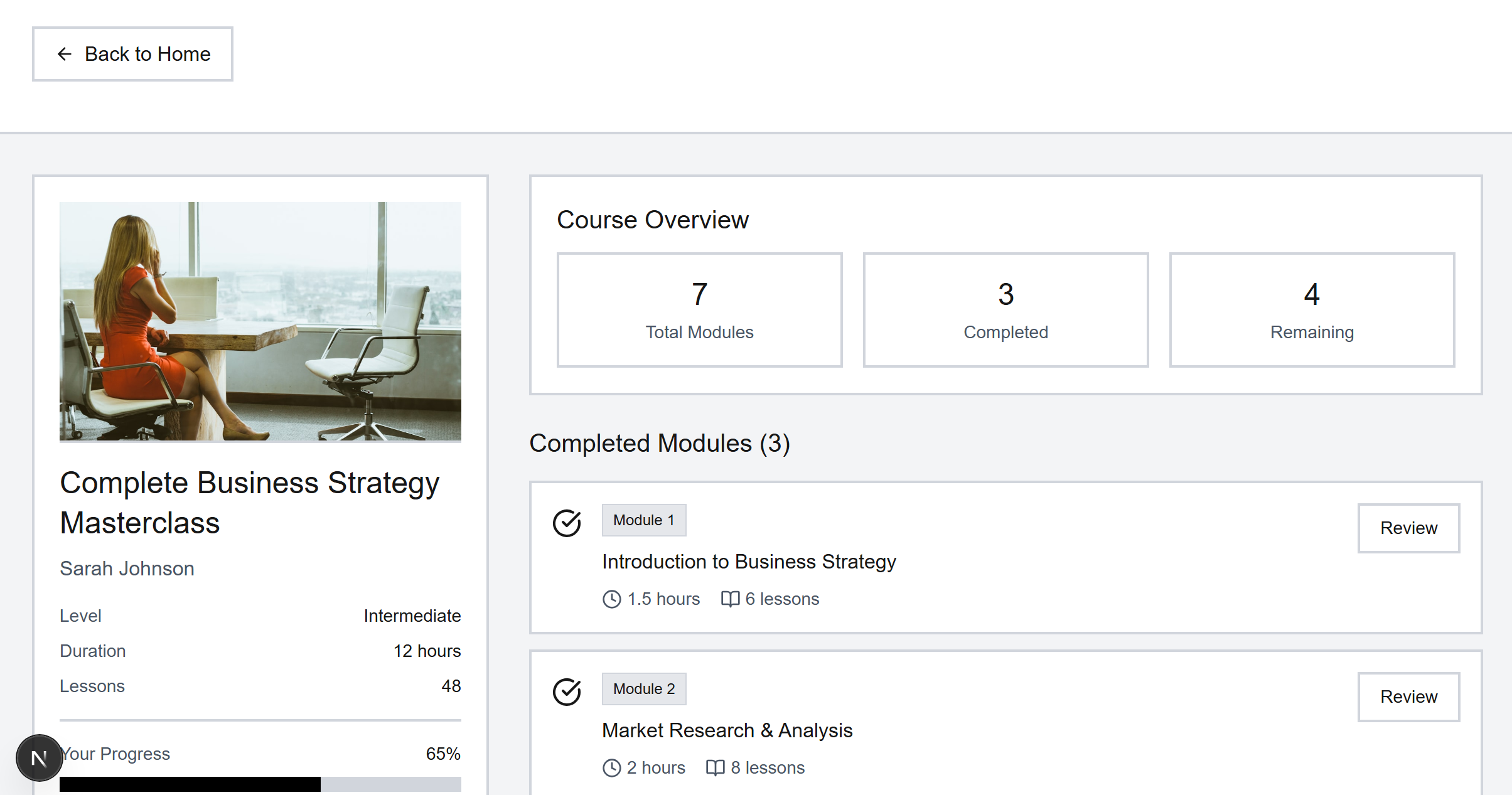 At the same time, we noticed another problem: even when learning is accessible, completion is rare. People start courses, watch videos, but never finish or validate what they’ve learned.