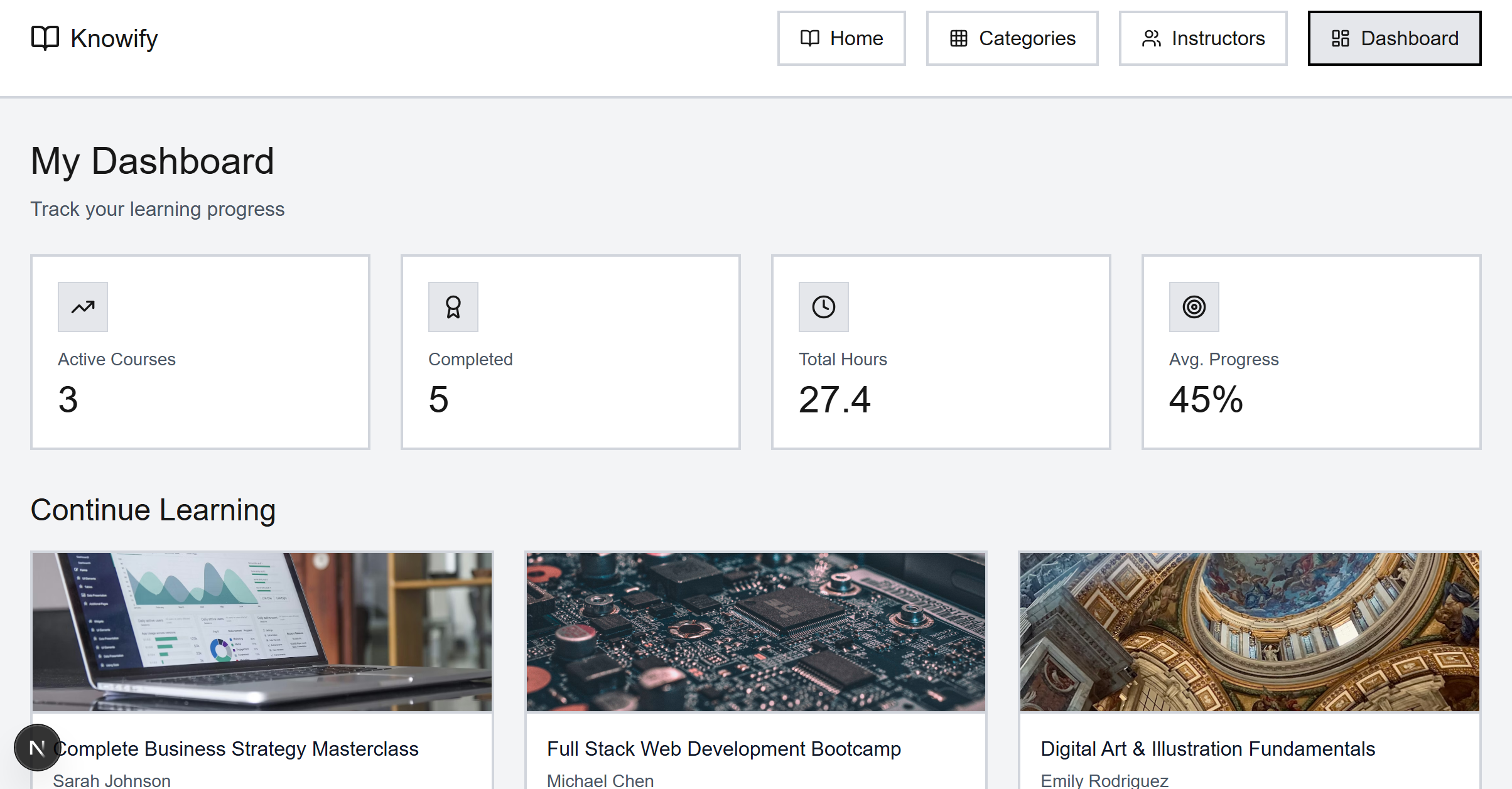 Knowify is a course marketplace built on a time-based access model. Learners get two hours of learning per day for free, No subscriptions, no upfront payments, no lockouts and anyone can start learning immediately.